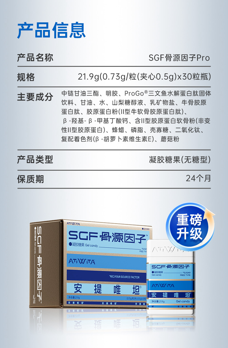 牛货‼️安提唯坦 SGF骨源因子Pro版 【骨肌逆龄+骨相抗衰+硬骨软骨肌肉一起补】