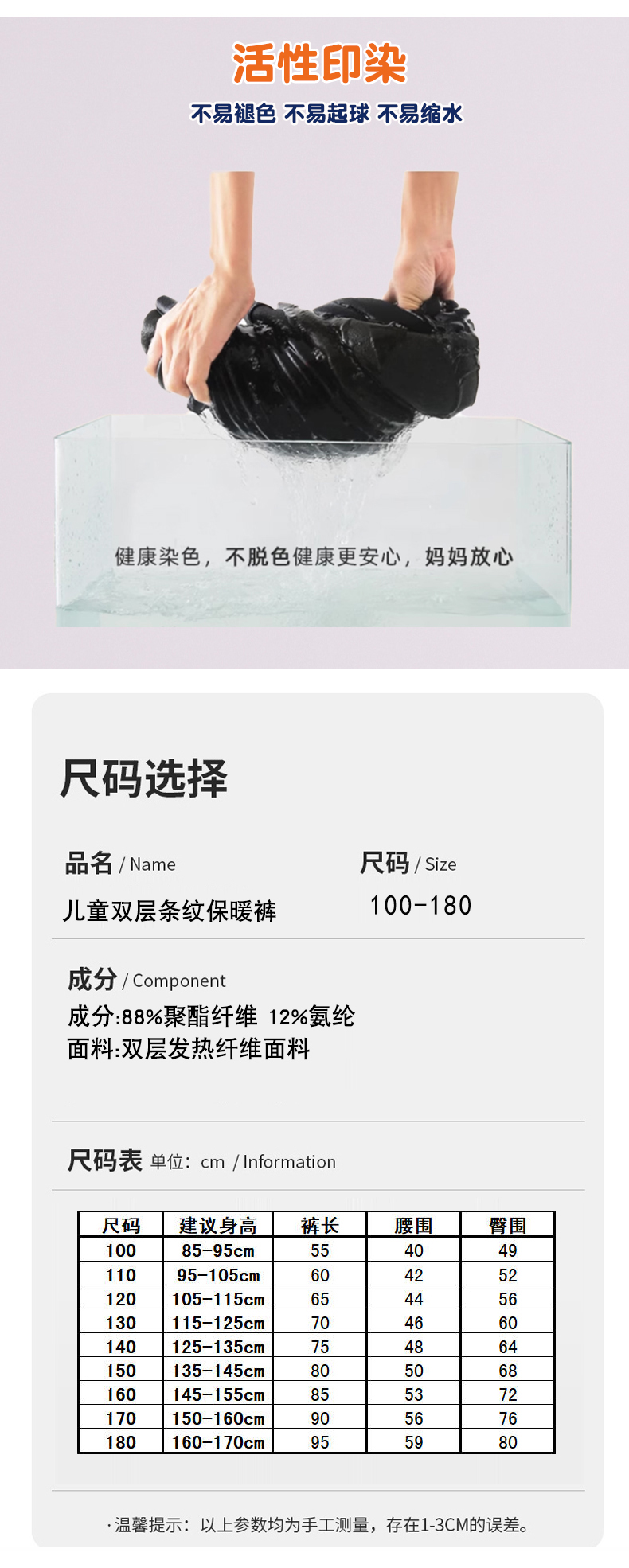 【A类品质,聚暖小棉裤】【更暖,更柔软】新款秋冬季儿童加绒加厚秋裤双层保暖打底裤中大童条纹棉裤