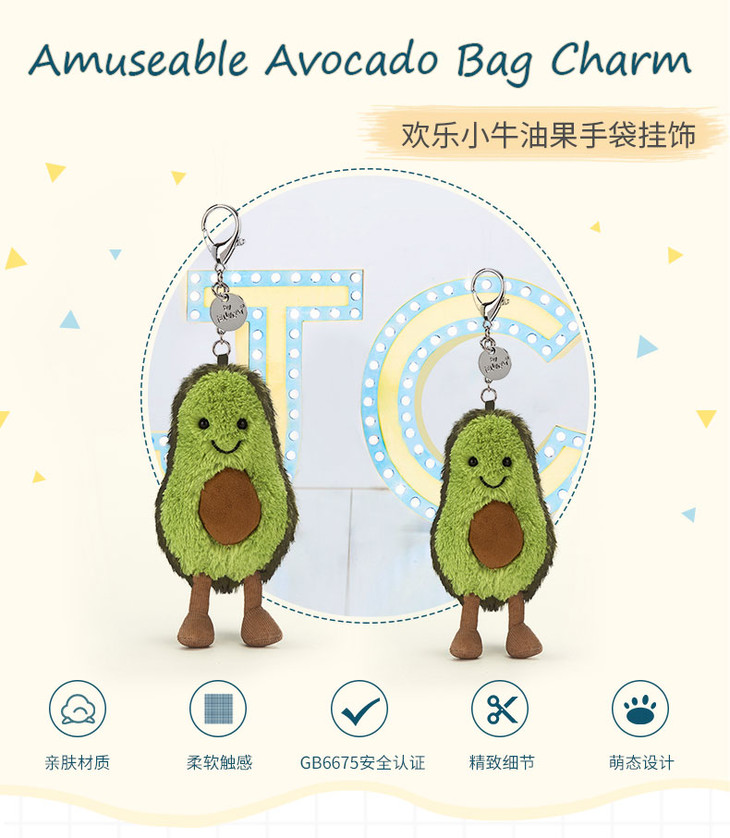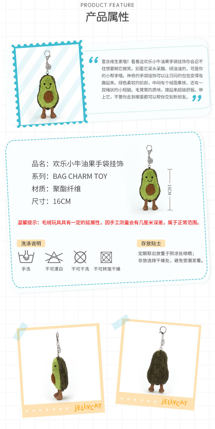 JELLYCAT欢乐小牛油果手袋挂饰 16cm JCACA4ABC