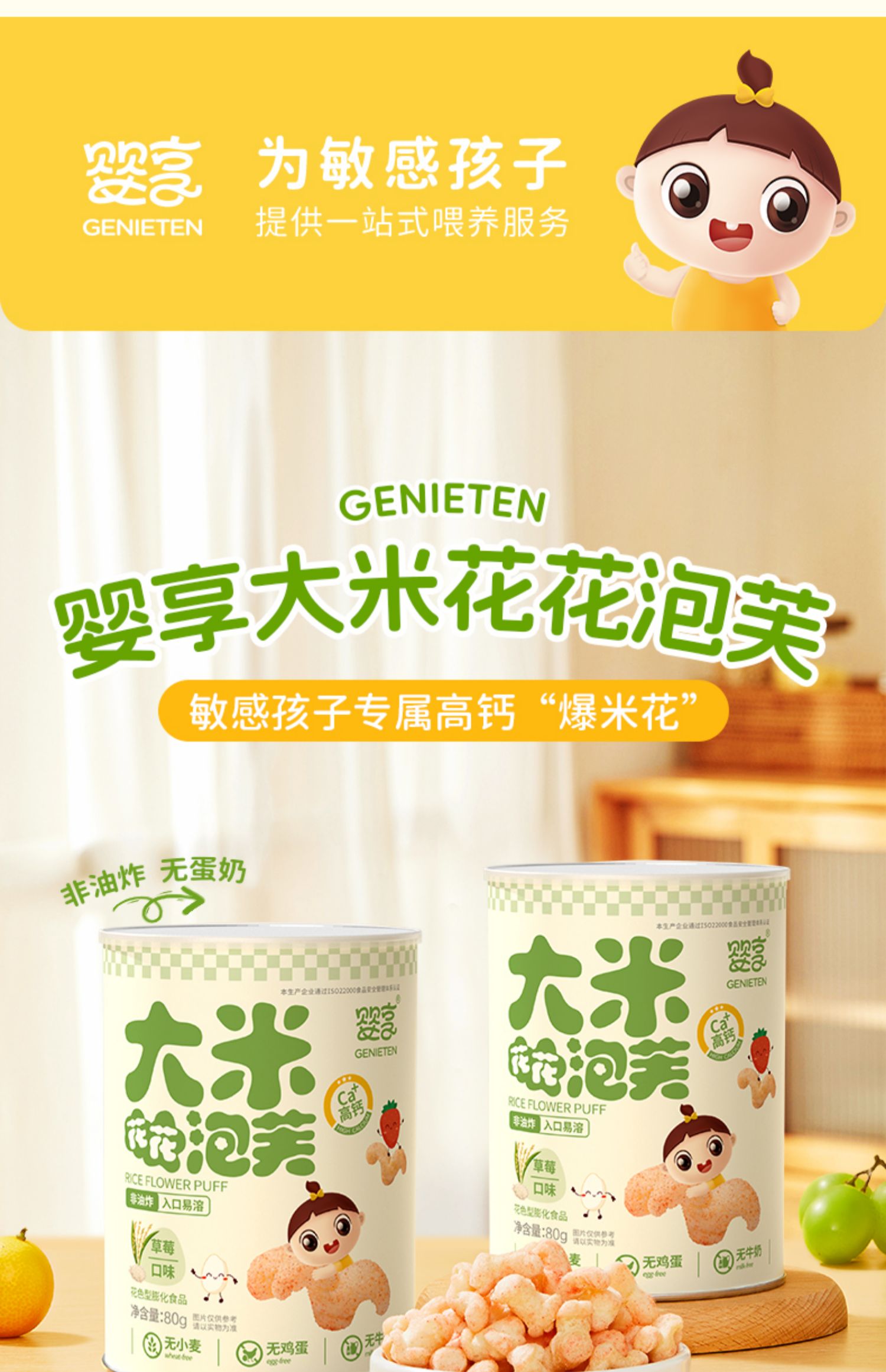 婴享大米花花泡芙无小麦无蛋奶高钙草莓味