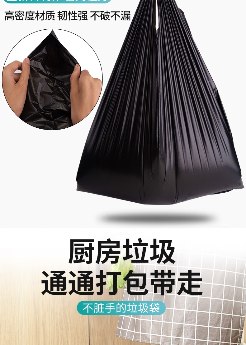 鑫峰家用手提式加厚垃圾袋厨房专用加大号黑色背心加厚塑料袋厨房防漏