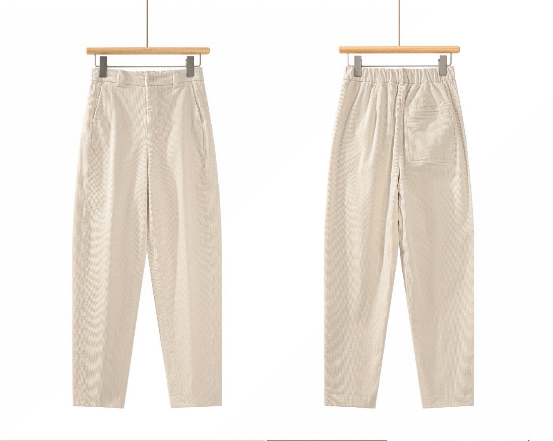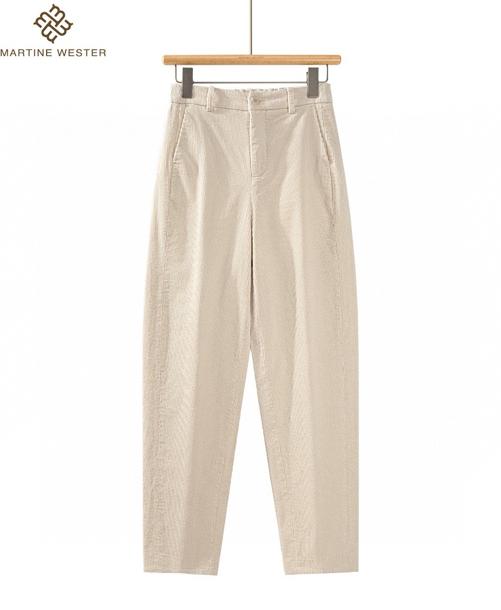 Martine Wester 女天丝棉11坑定织灯芯绒长裤; 定织天丝棉灯芯绒面料,柔软舒适。 宽松版型,穿搭性强,上身无拘无束、慵懒随性!