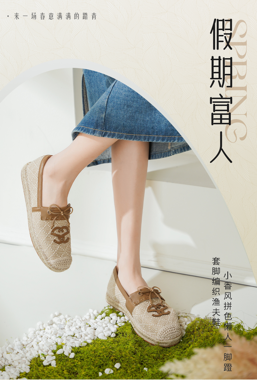 预售10天|Safiya/索菲娅2025小香风拼色懒人一脚蹬套脚编织渔夫鞋SFD1112234
