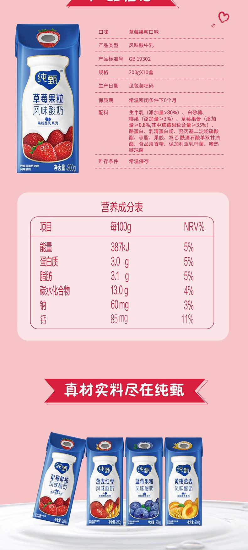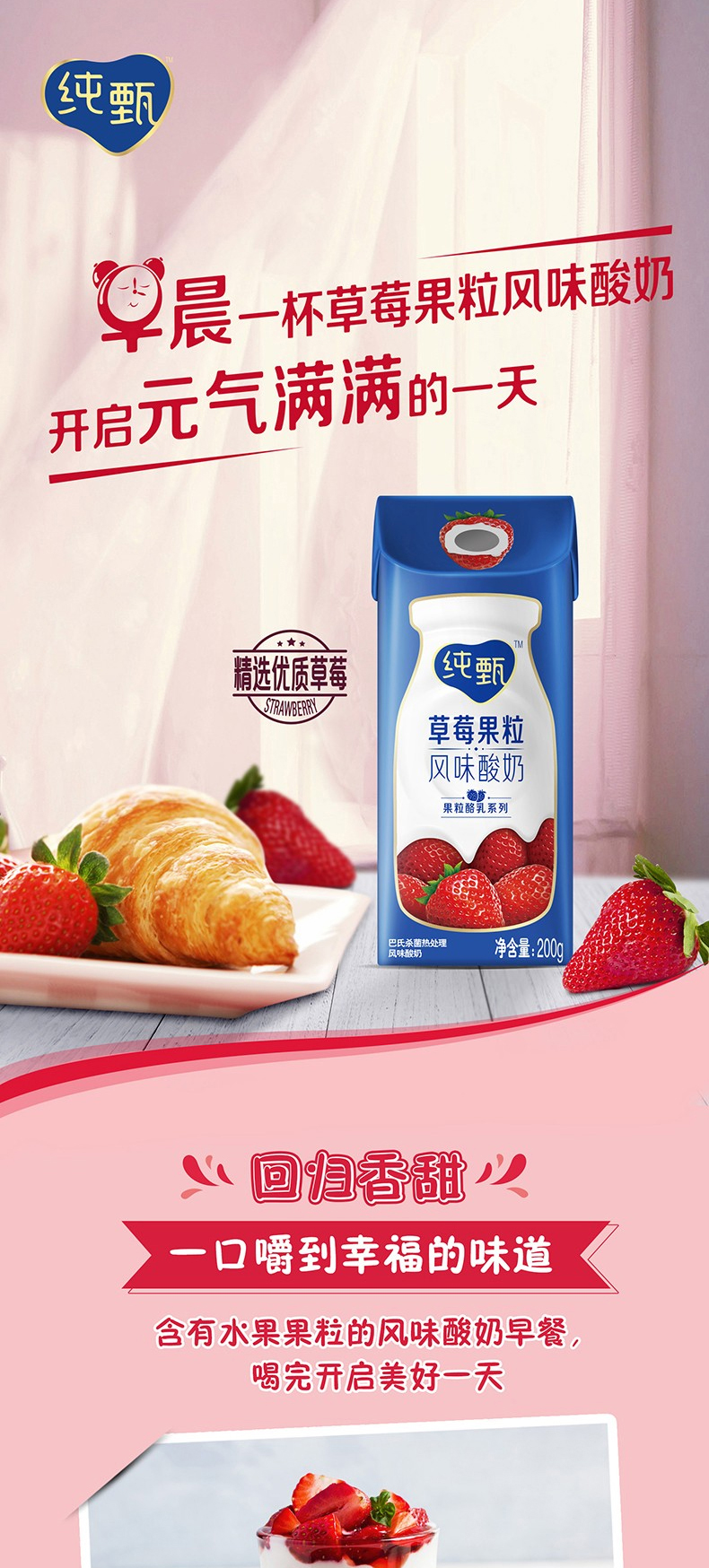 纯甄草莓果粒风味酸奶康美笑脸包200g×10包H