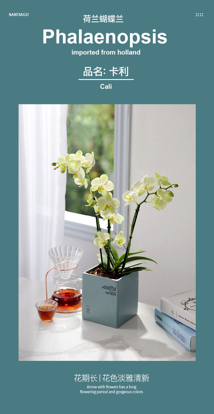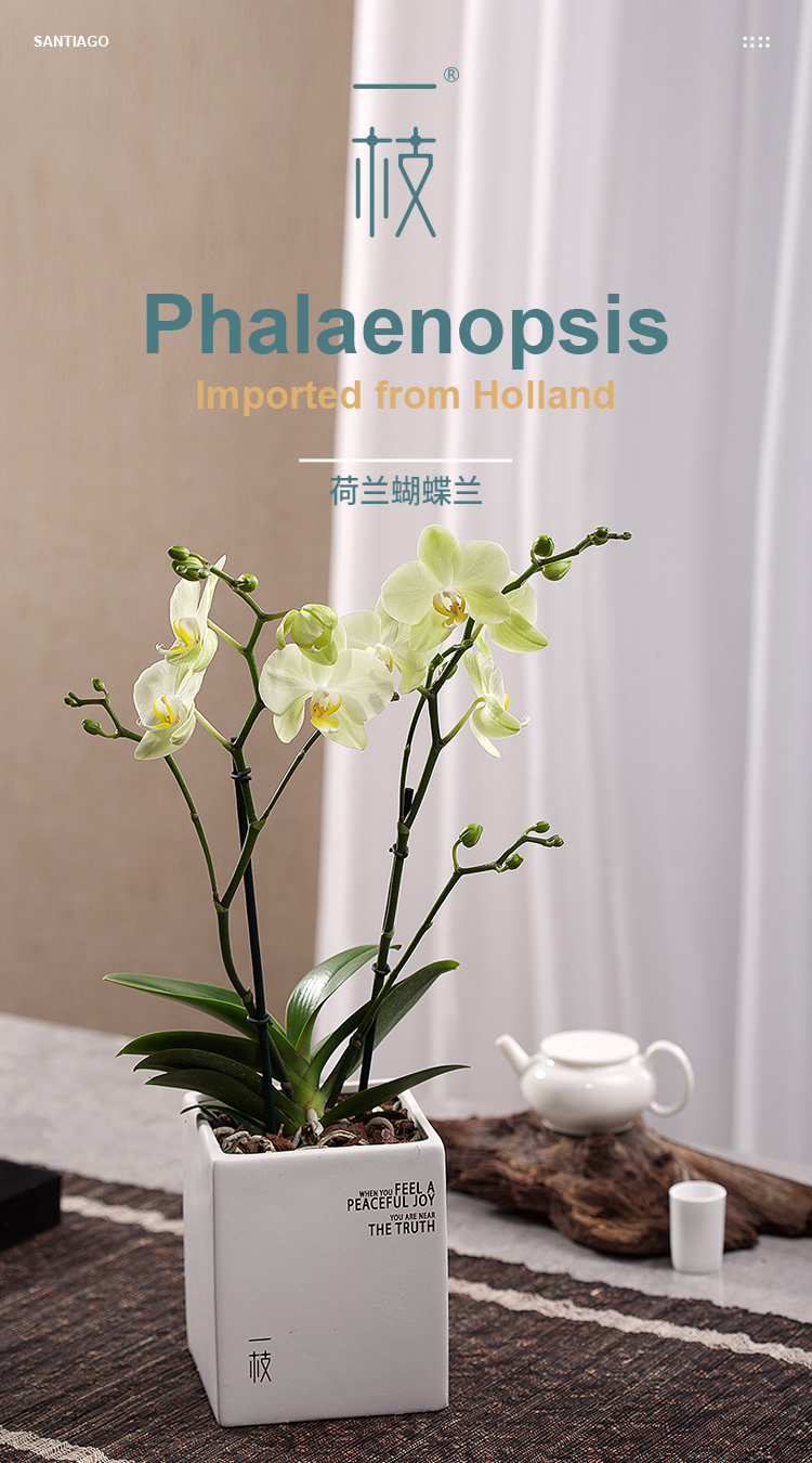 一枝卡利 荷兰蝴蝶兰带花盆栽植物 椰块栽培无病菌感染