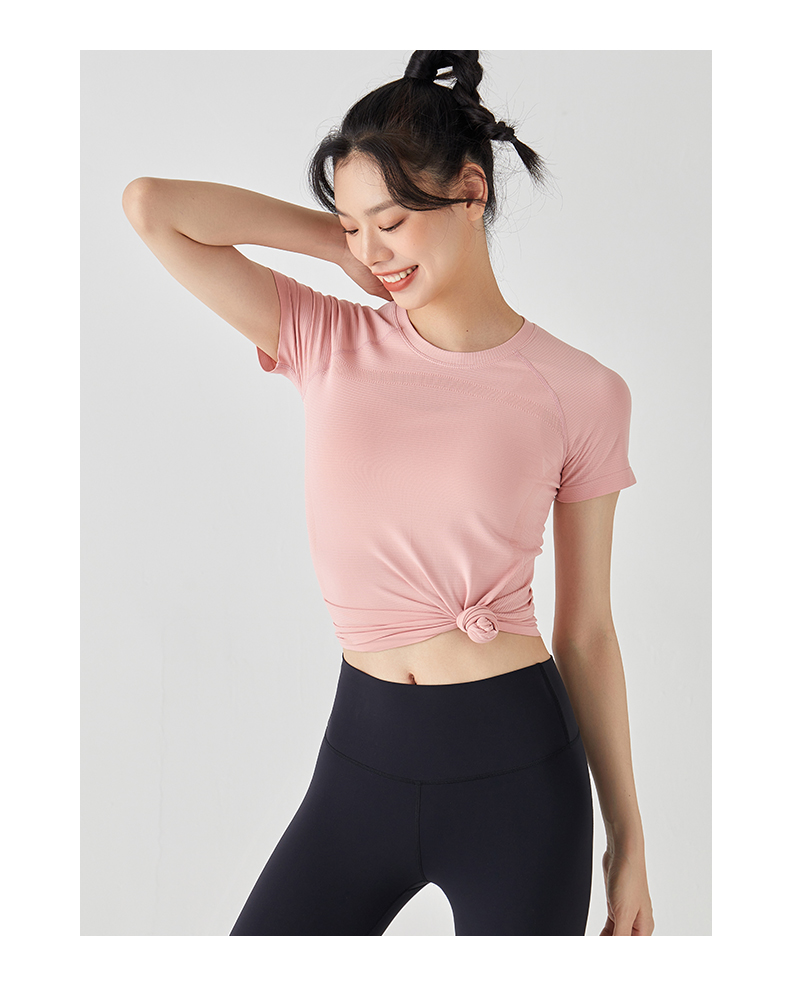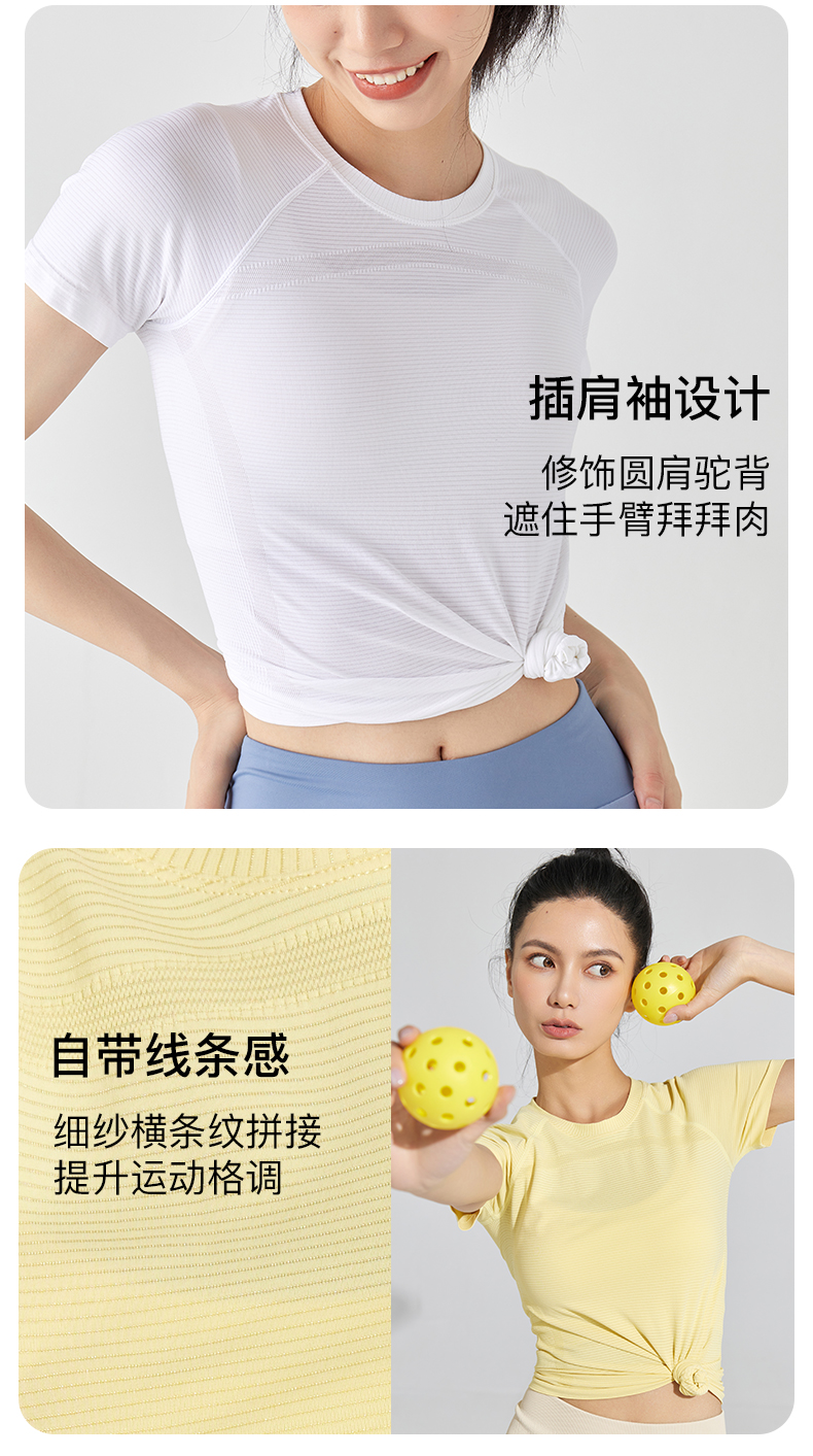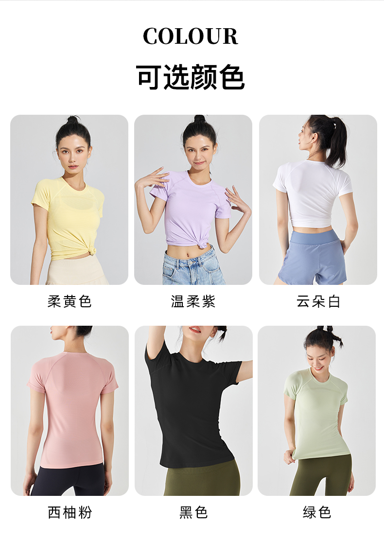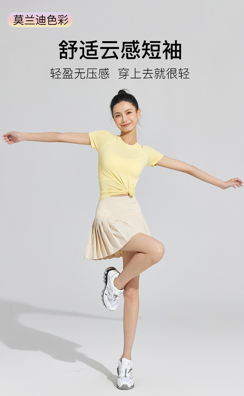 Leorrey乐拉运动短袖薄舒适云感跳操透气圆领瑜伽纯色健身T恤