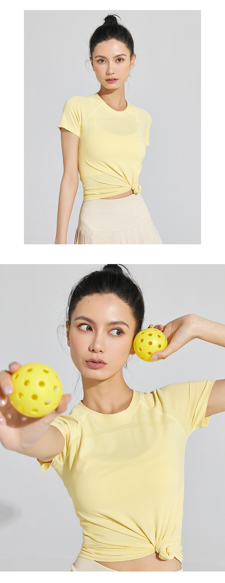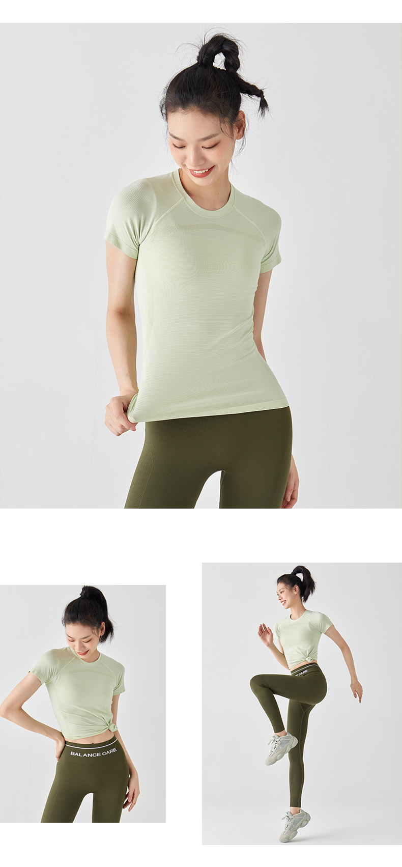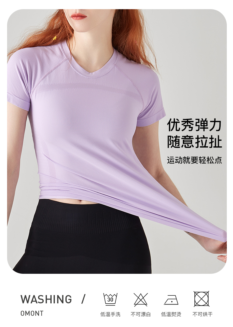 Leorrey乐拉运动短袖薄舒适云感跳操透气圆领瑜伽纯色健身T恤