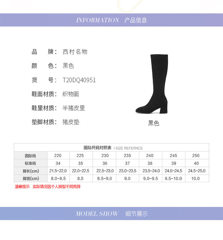 西村名物秋冬2020新款骑士靴弹力靴高靴T20DQ40951