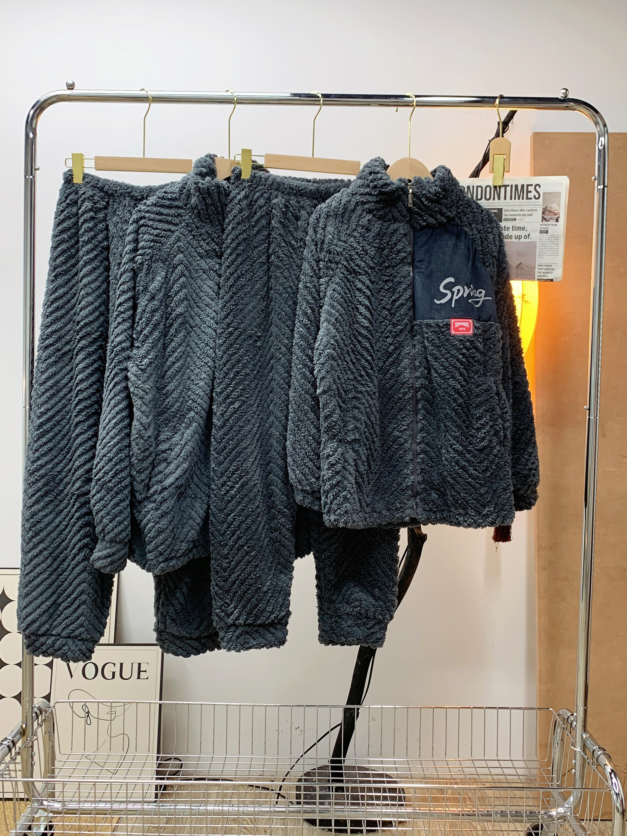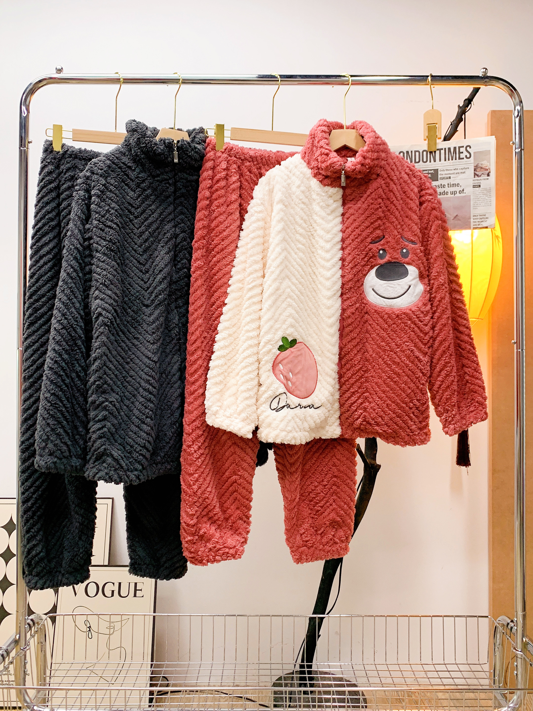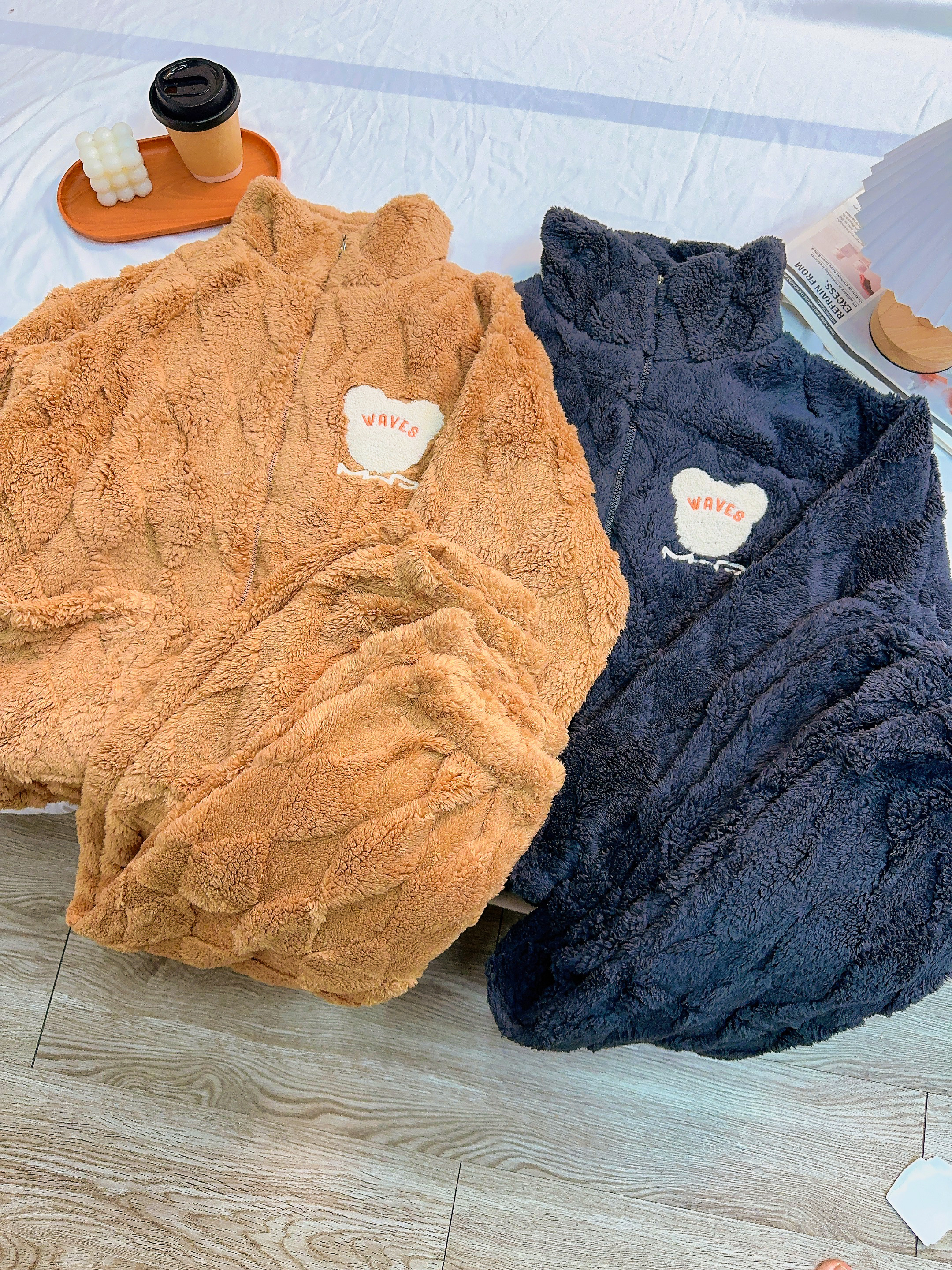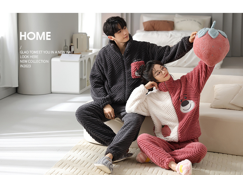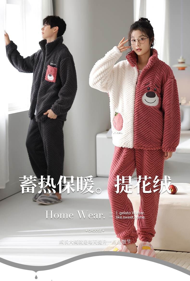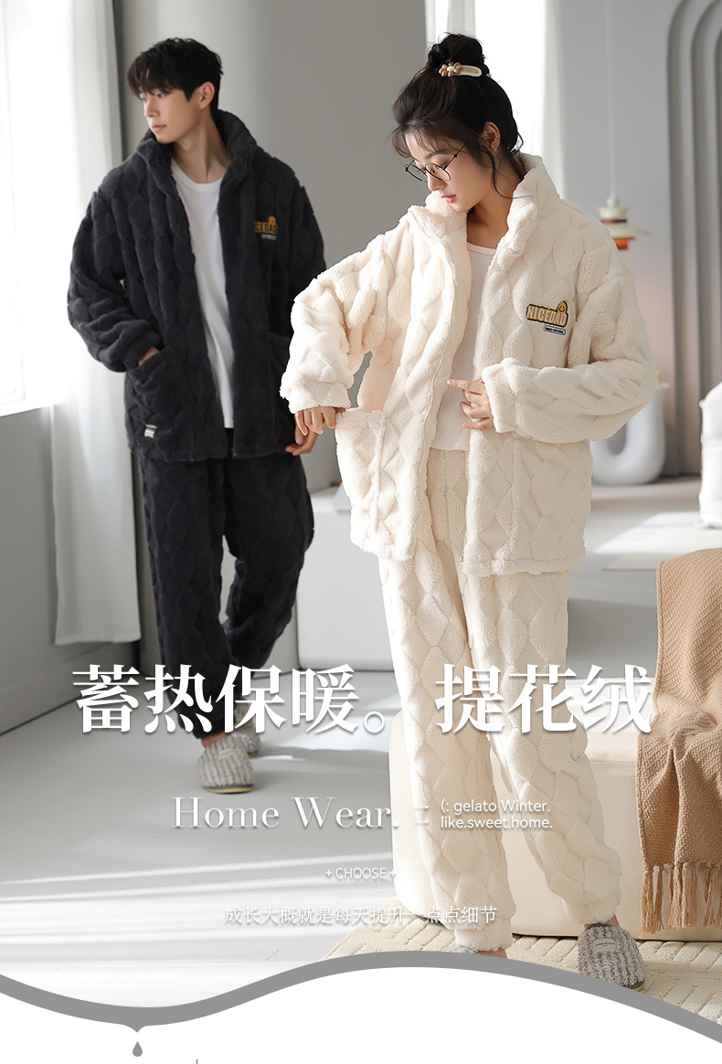 【古今丨情侣提花绒睡衣套装】加绒加厚提花绒,蓄热锁温!绵密轻盈、软糯丝滑、舒适保暖又亲肤!宽松版型,上身不臃肿!