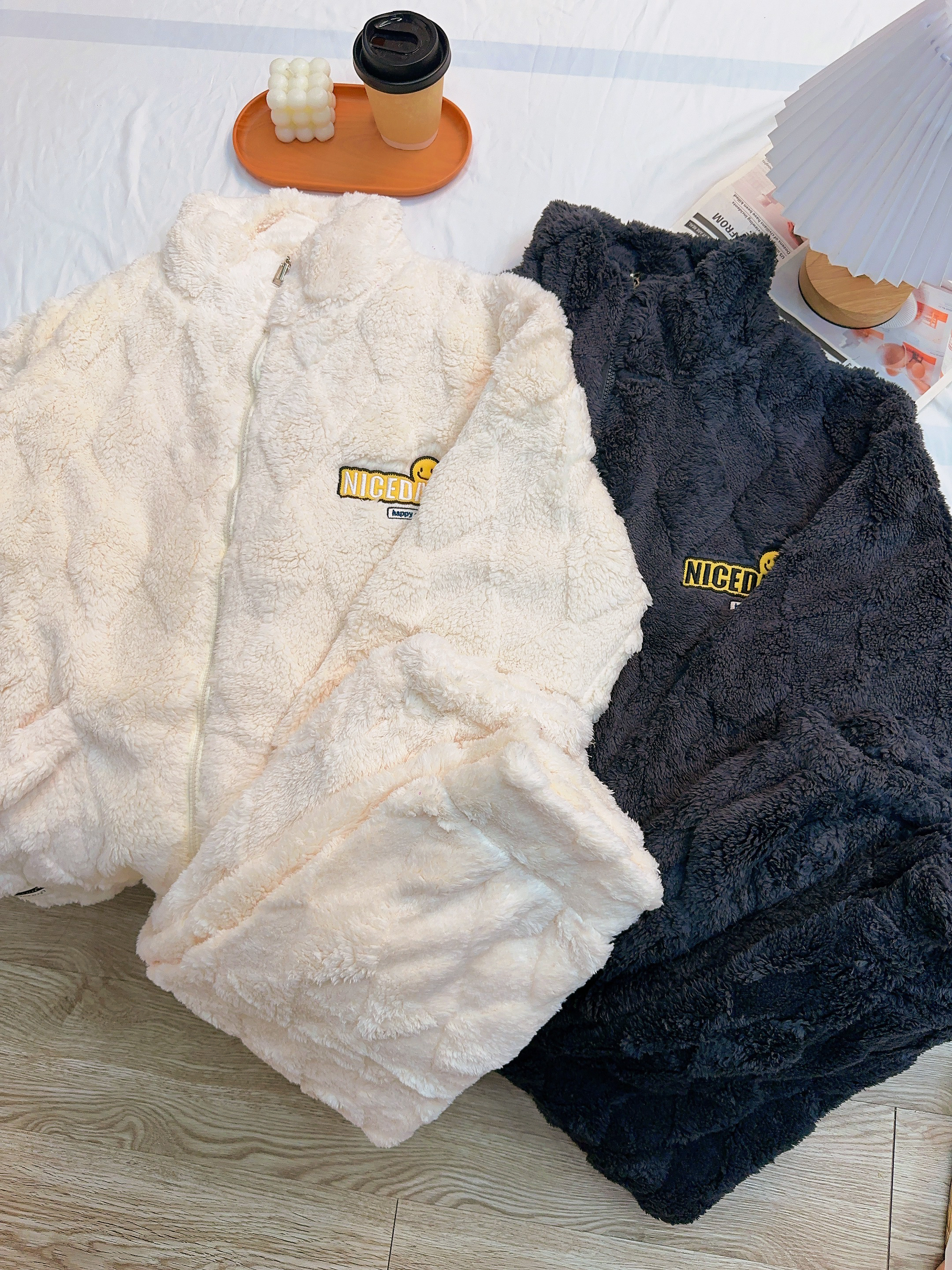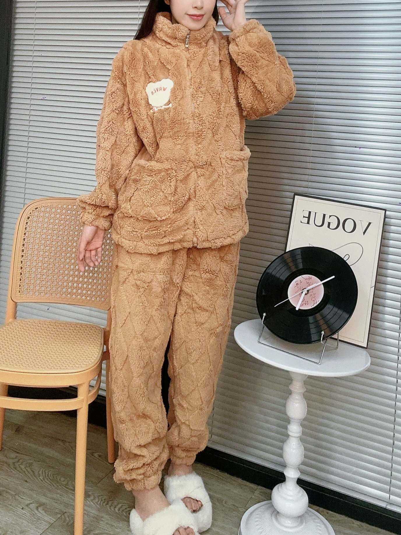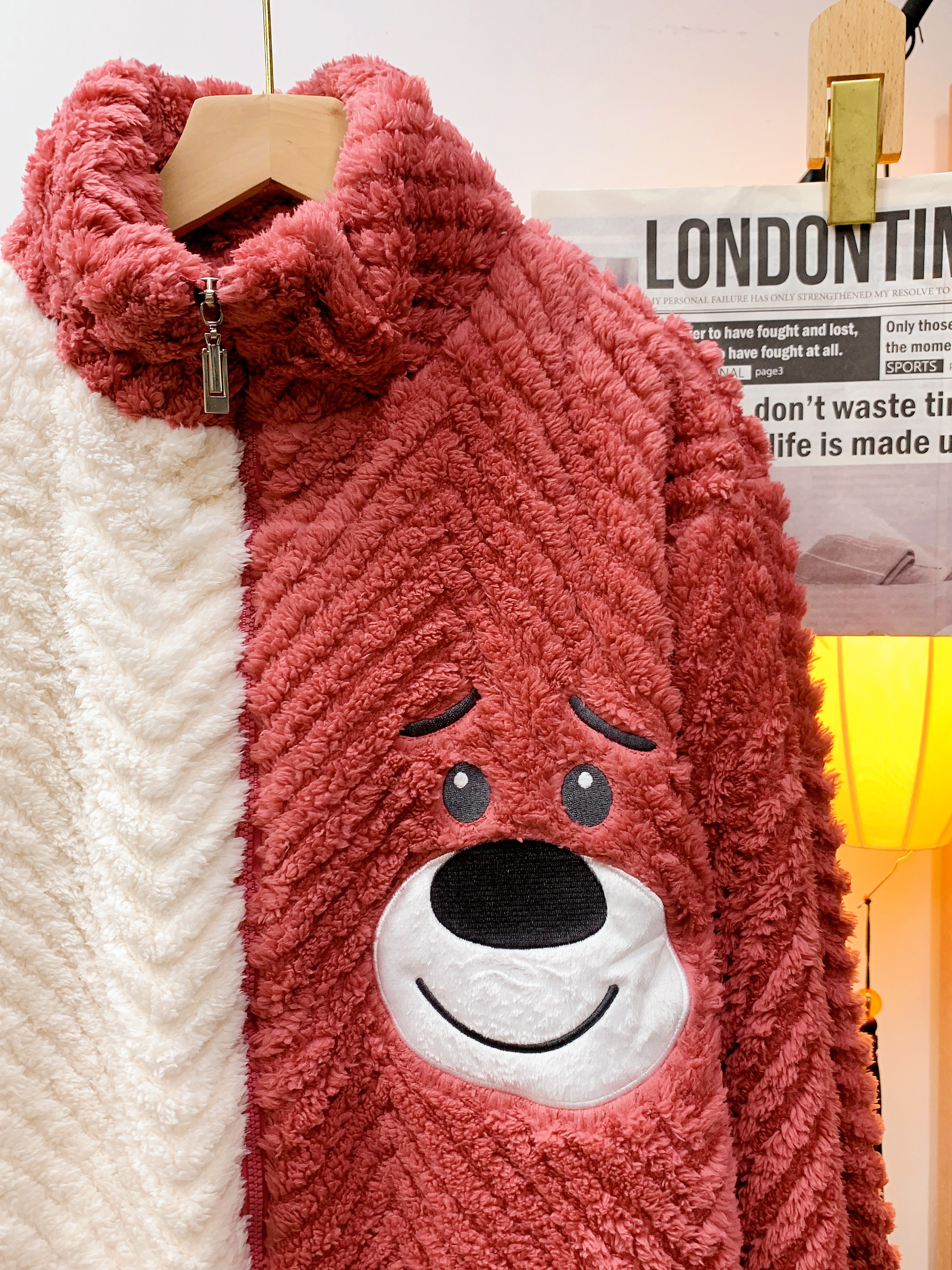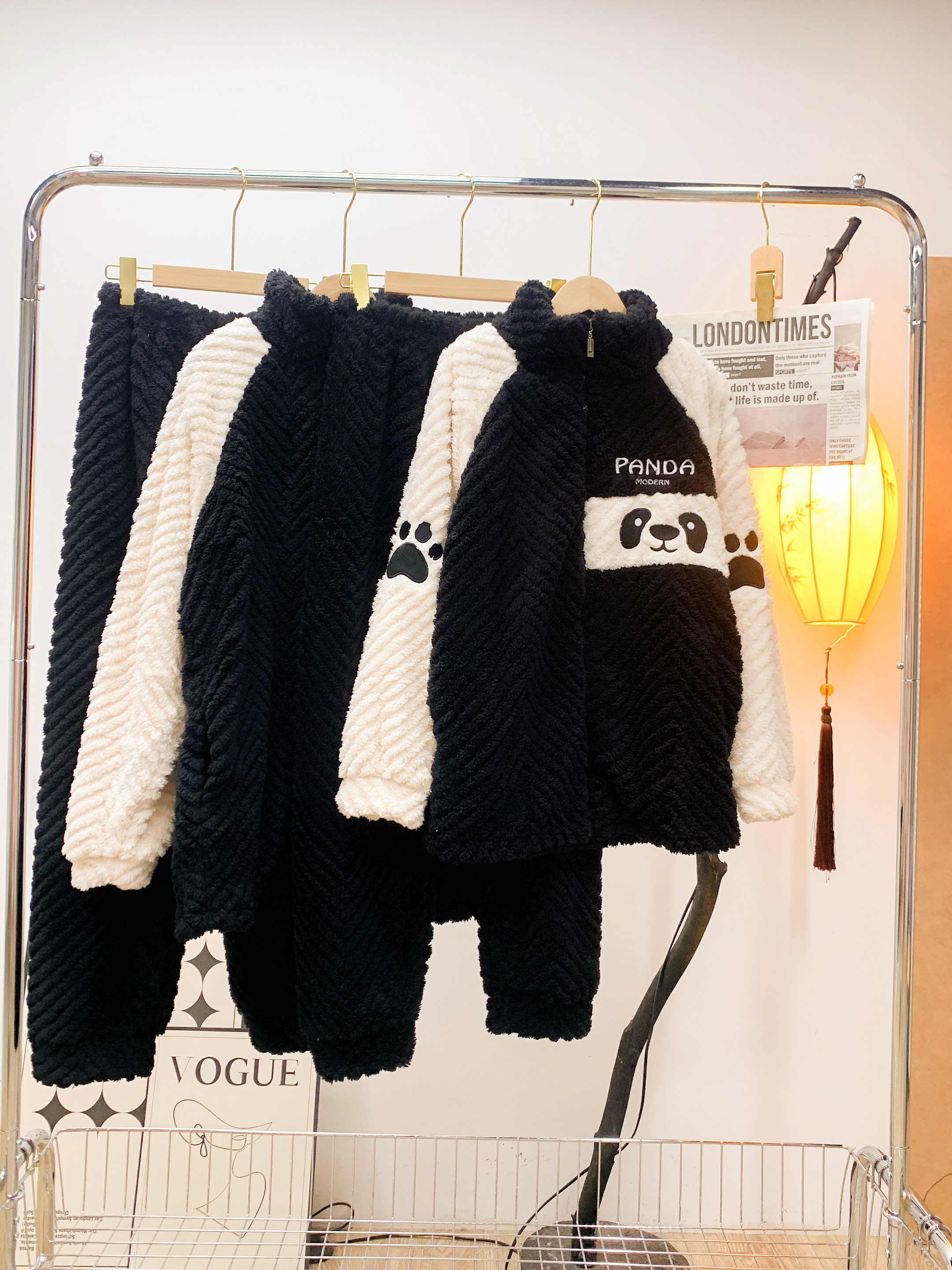【古今丨情侣提花绒睡衣套装】加绒加厚提花绒,蓄热锁温!绵密轻盈、软糯丝滑、舒适保暖又亲肤!宽松版型,上身不臃肿!