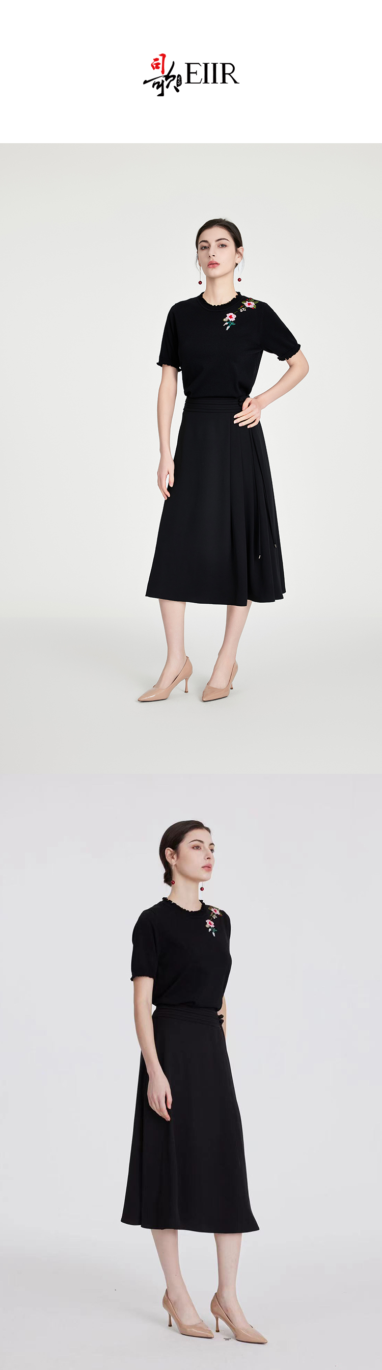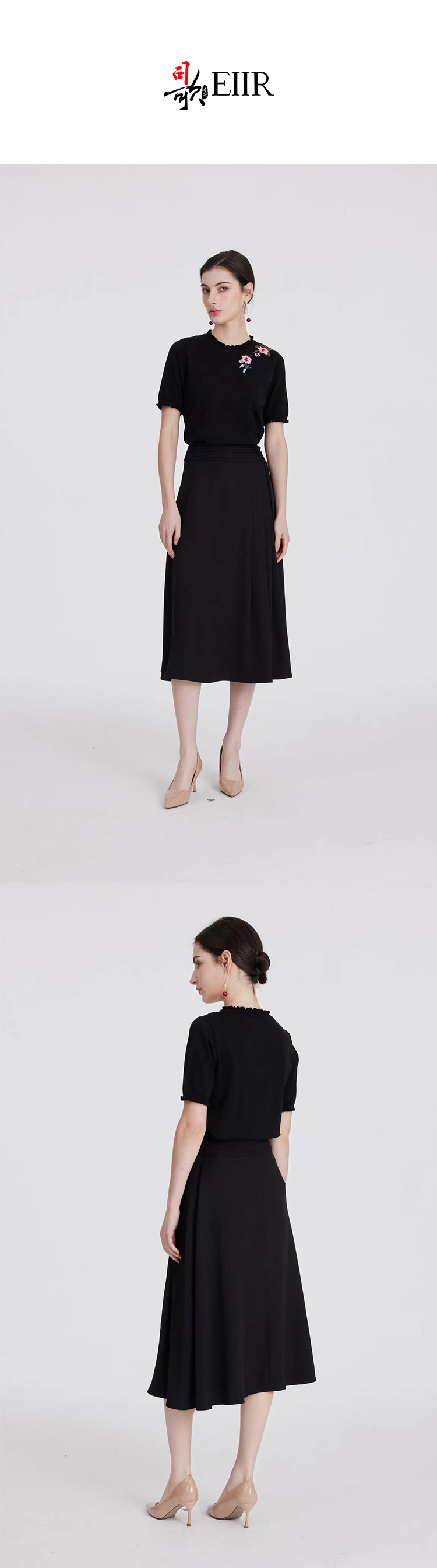 司歌长袖圆领冬连衣裙弹力收腰百搭净色气质A881025