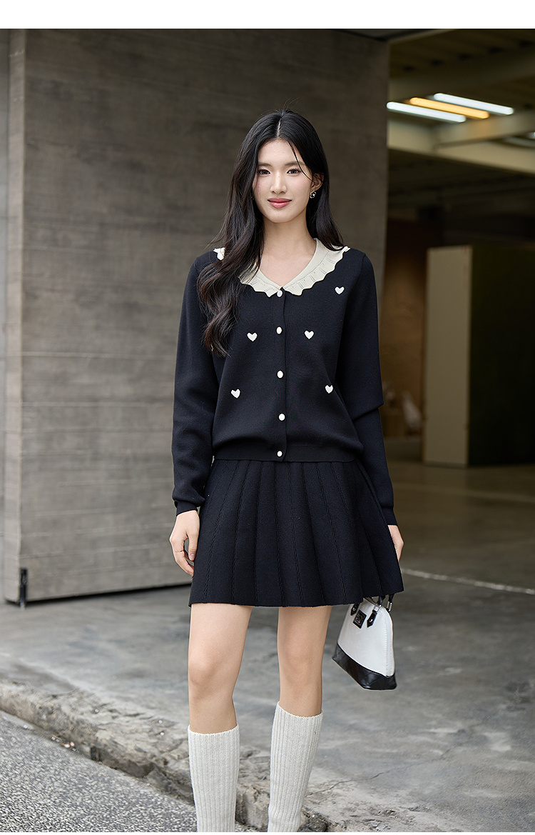 奢姿大码女装2025冬季胖妹妹时尚爱心撞色针织衫气质甜美显瘦上衣9854694220