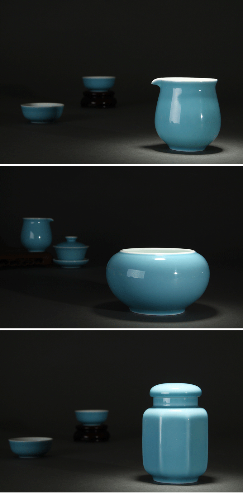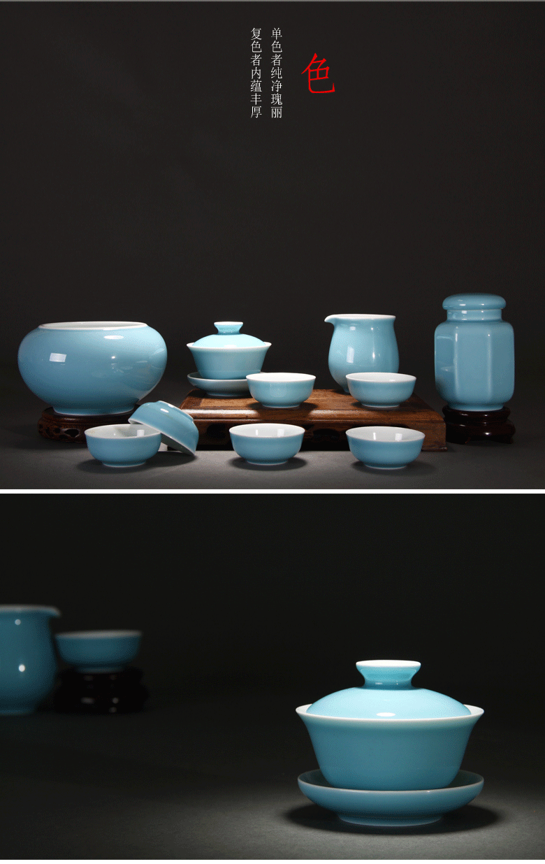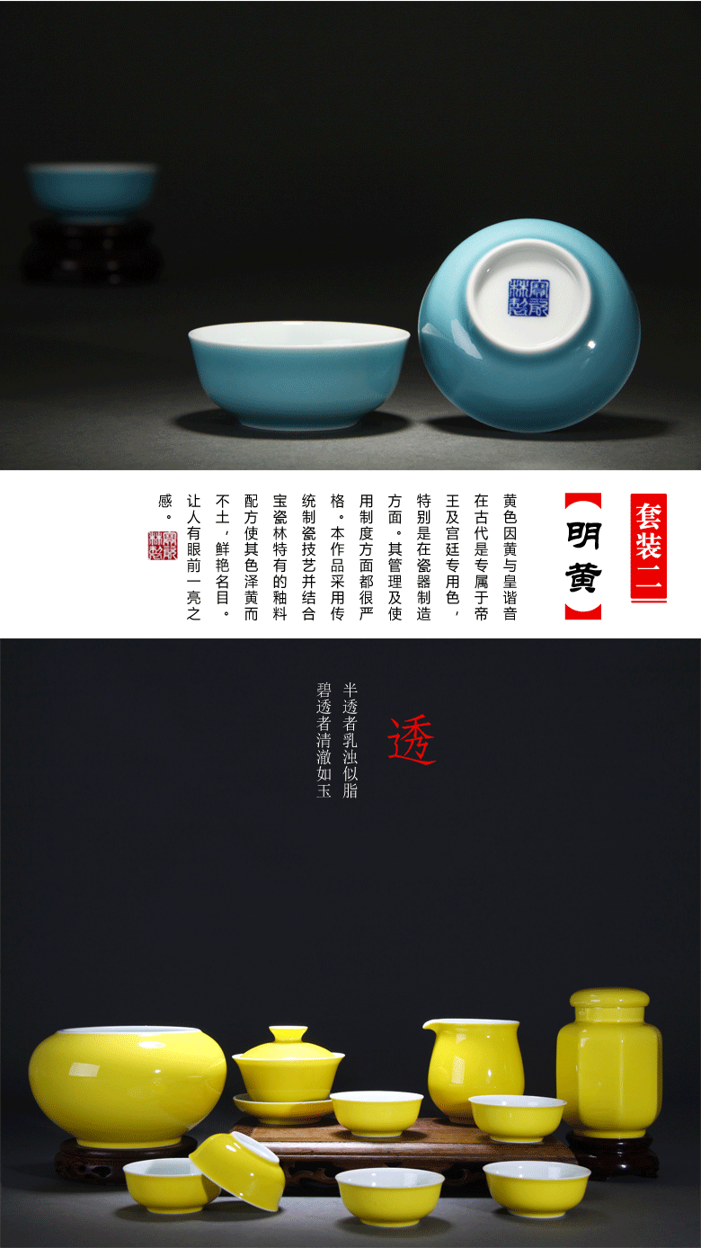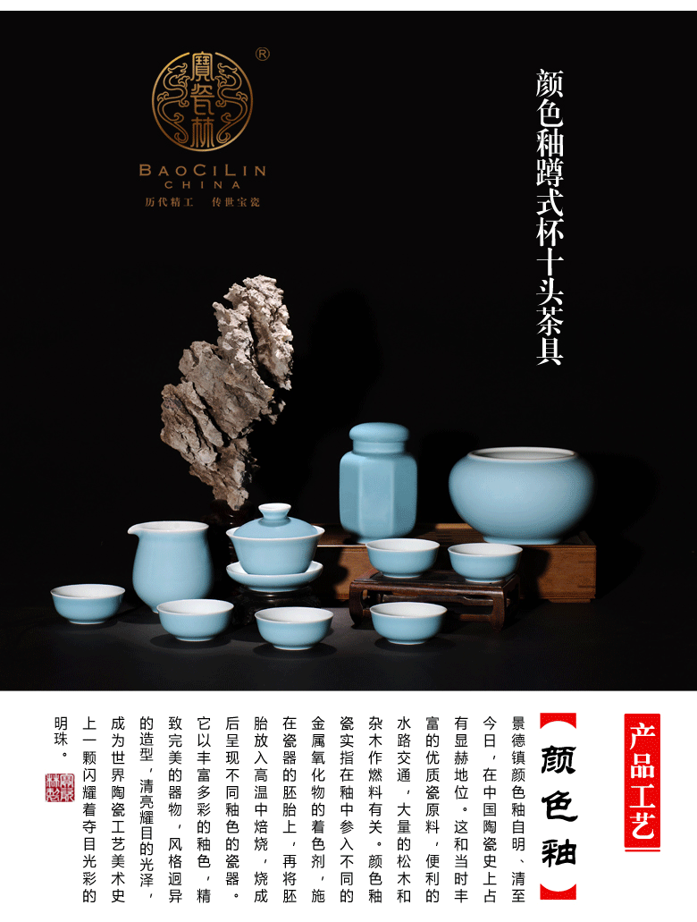 【宝瓷林】颜色釉 天青祭蓝明黄豆青10头功夫茶具