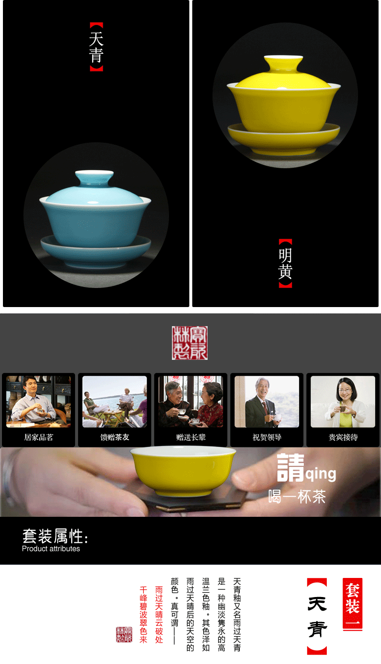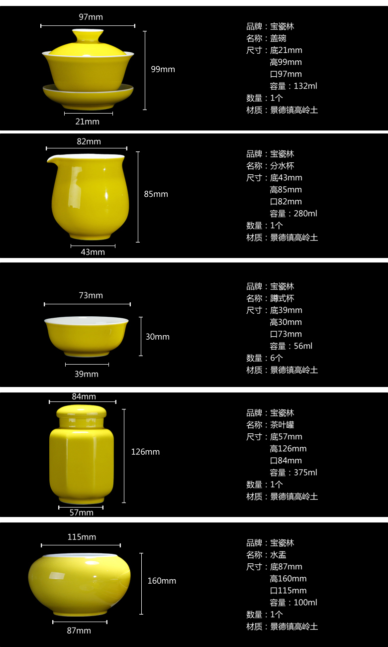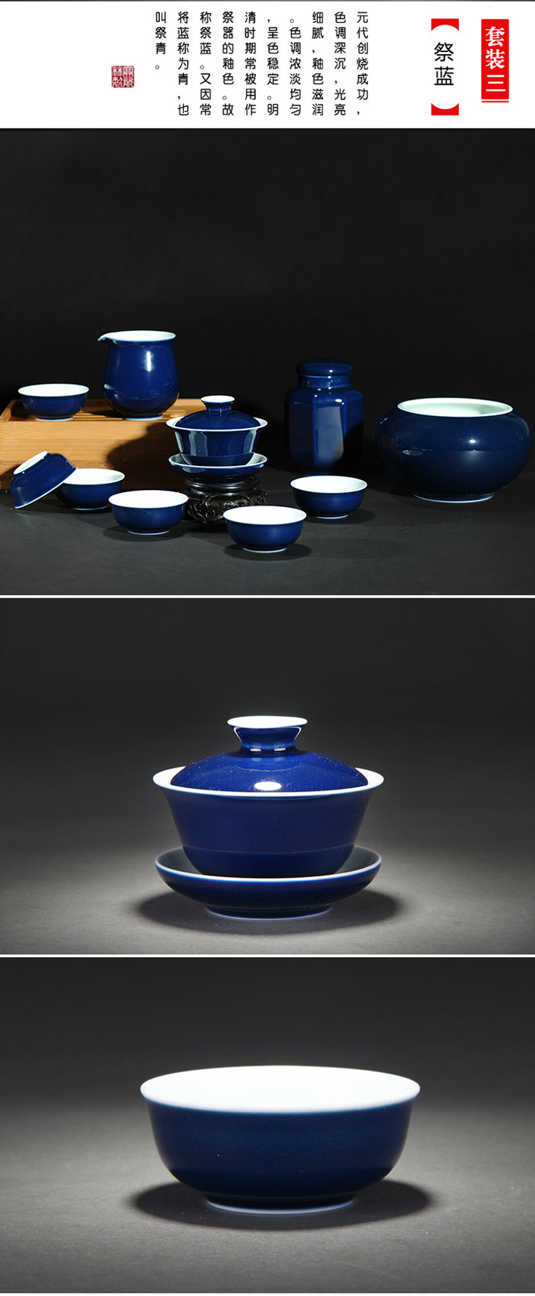 【宝瓷林】颜色釉 天青祭蓝明黄豆青10头功夫茶具