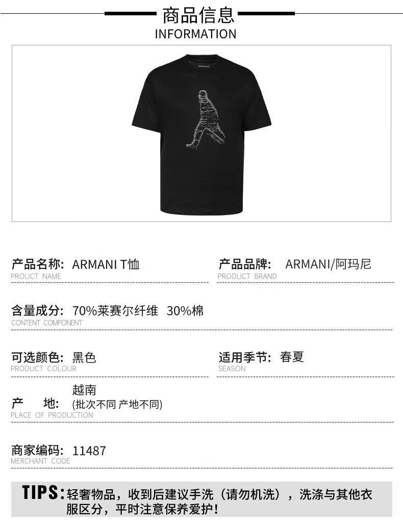 【超惠秒】Emporio Armani 男士 百搭舒适莱赛尔纤维 刺绣签字人行logo 薄款休闲短袖T恤11487