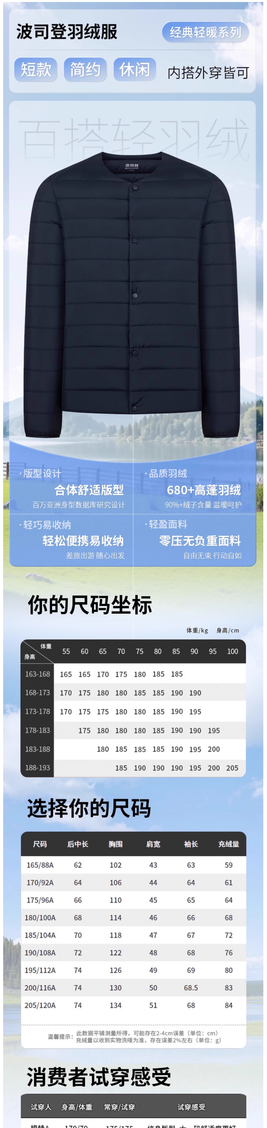 波司登轻薄羽绒服男2025秋新款中老年短款保暖羽绒B250130003