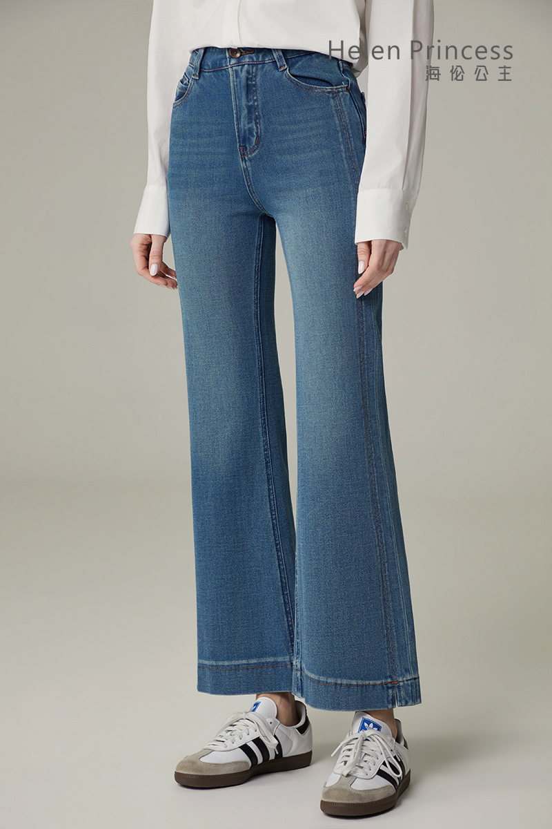 以经典高腰设计重塑身材比例,自然提拉腰线,更显腿长。微喇裤型复古时尚,有效修饰小腿线条,兼具舒适与美观。