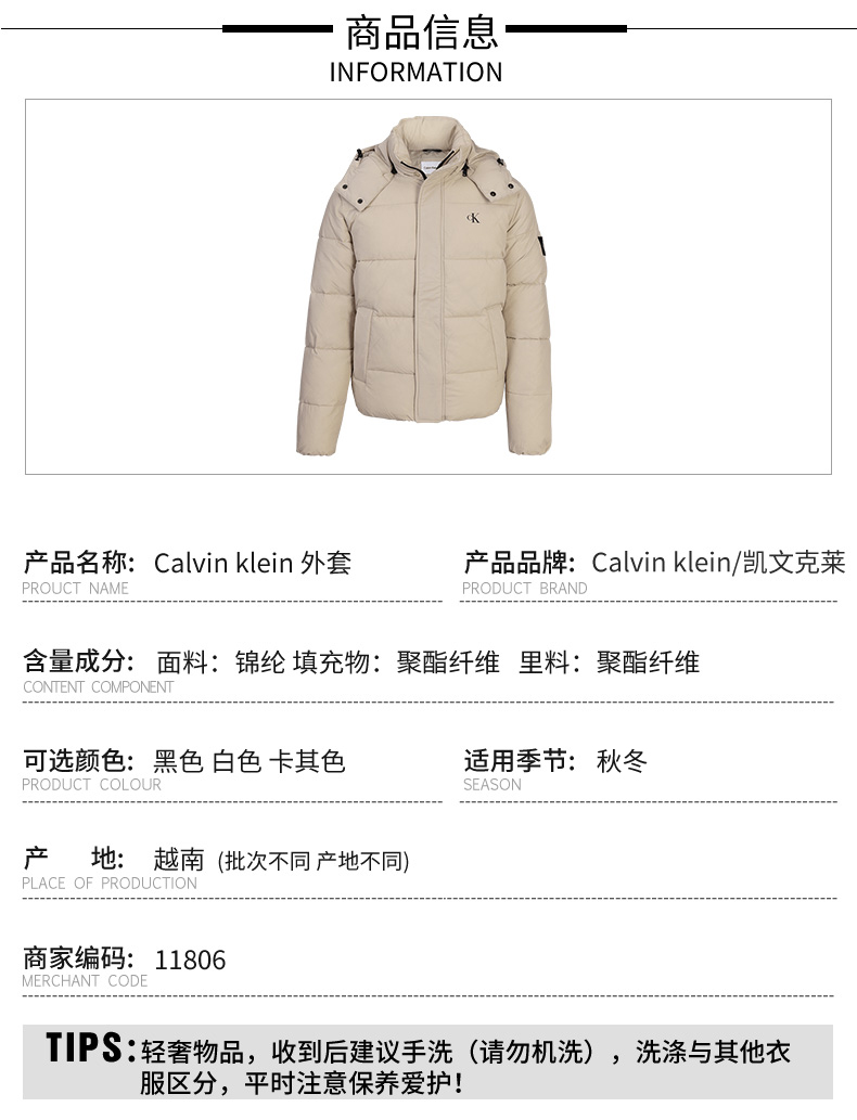 CK 卡文·克莱 男士防风雪抗寒保暖棉服外套 11806