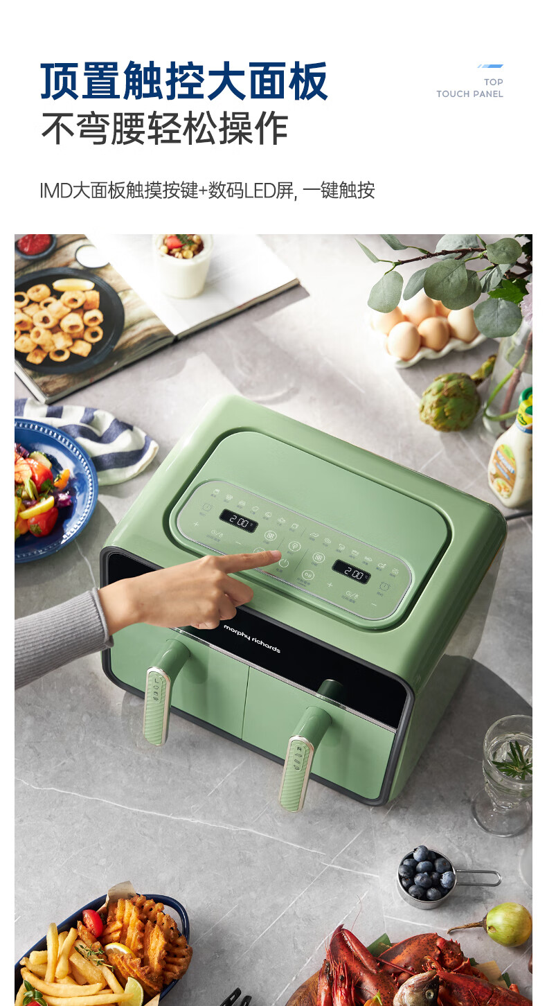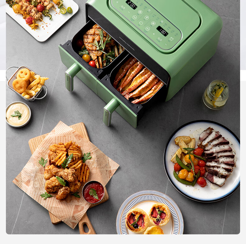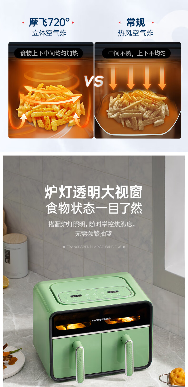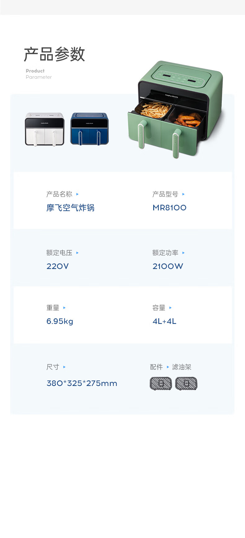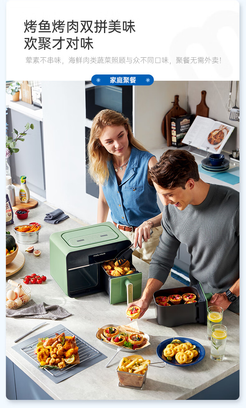 摩飞家用8L大容量可视双炸篮多功能空气炸烤箱 MR8100