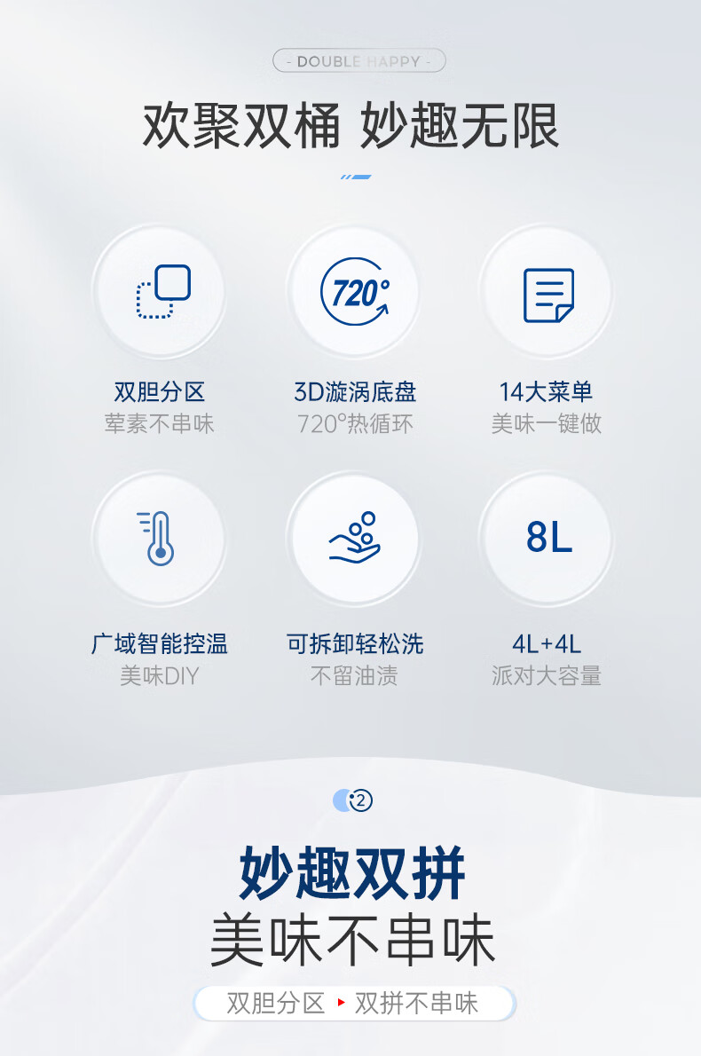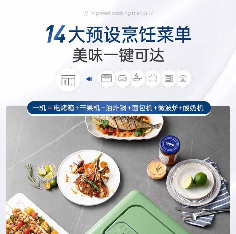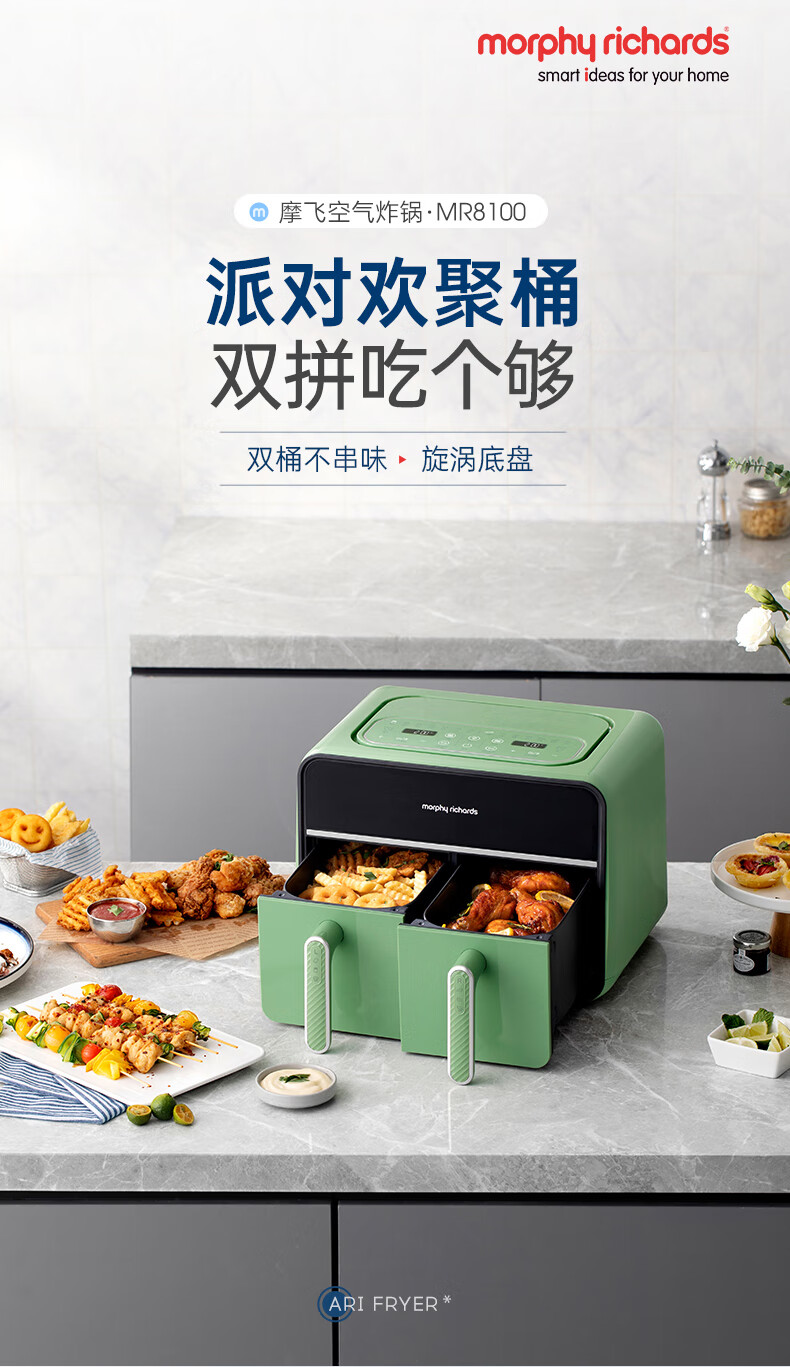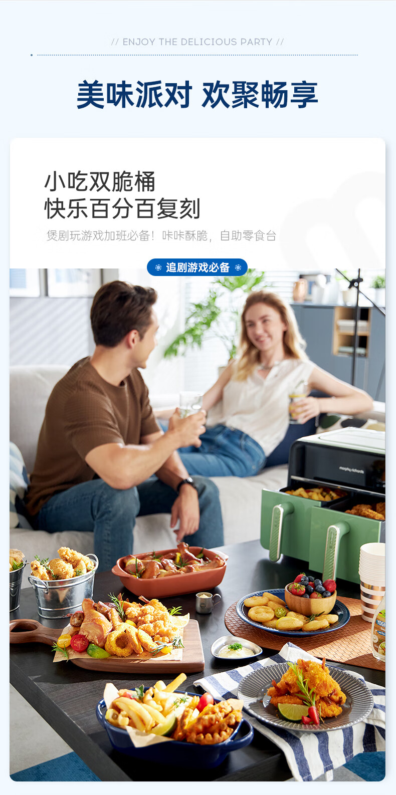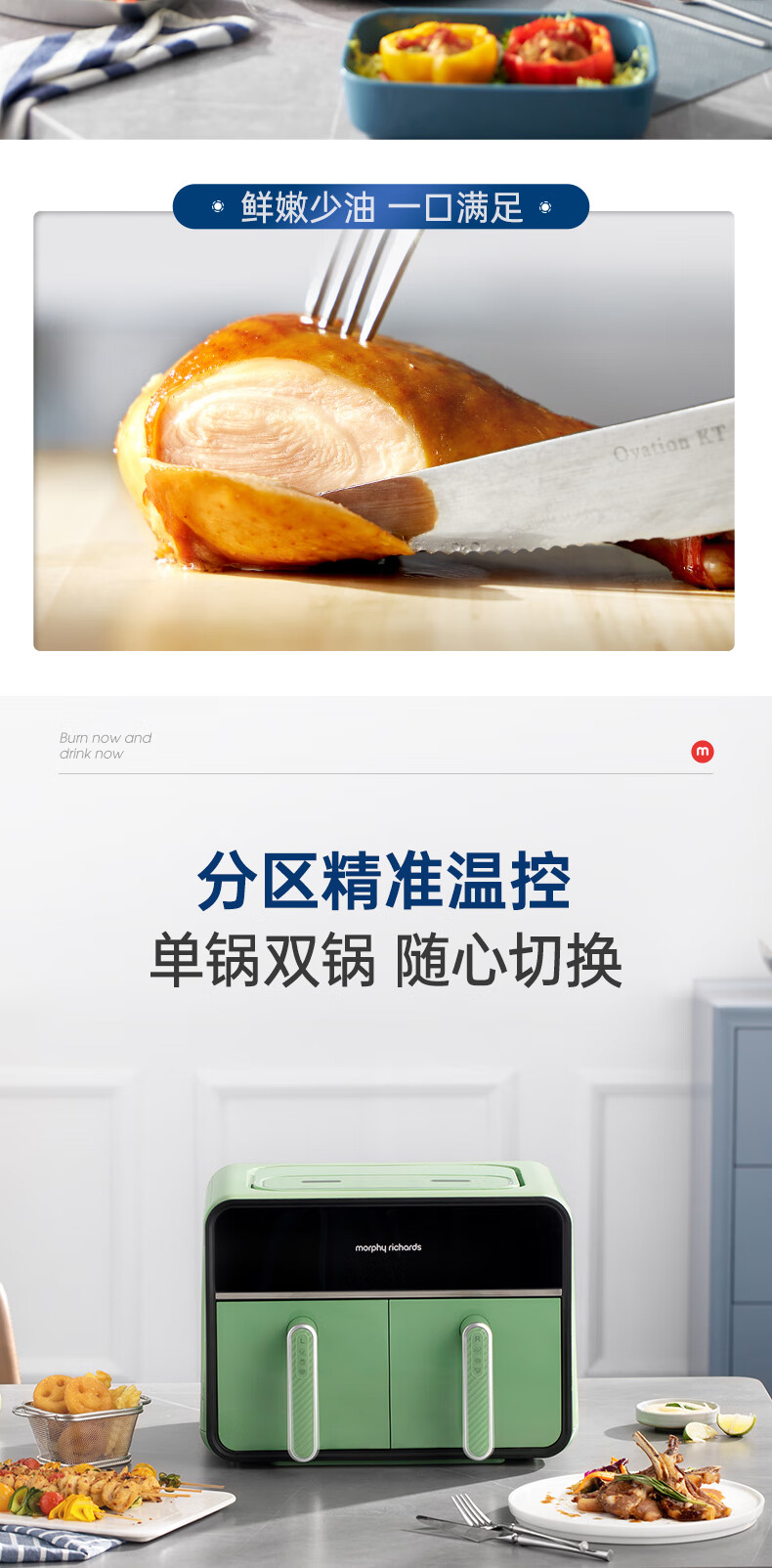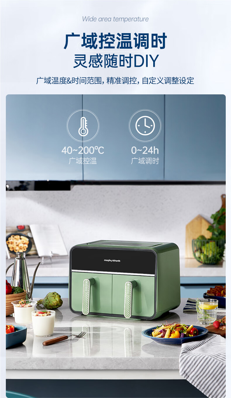 摩飞家用8L大容量可视双炸篮多功能空气炸烤箱 MR8100
