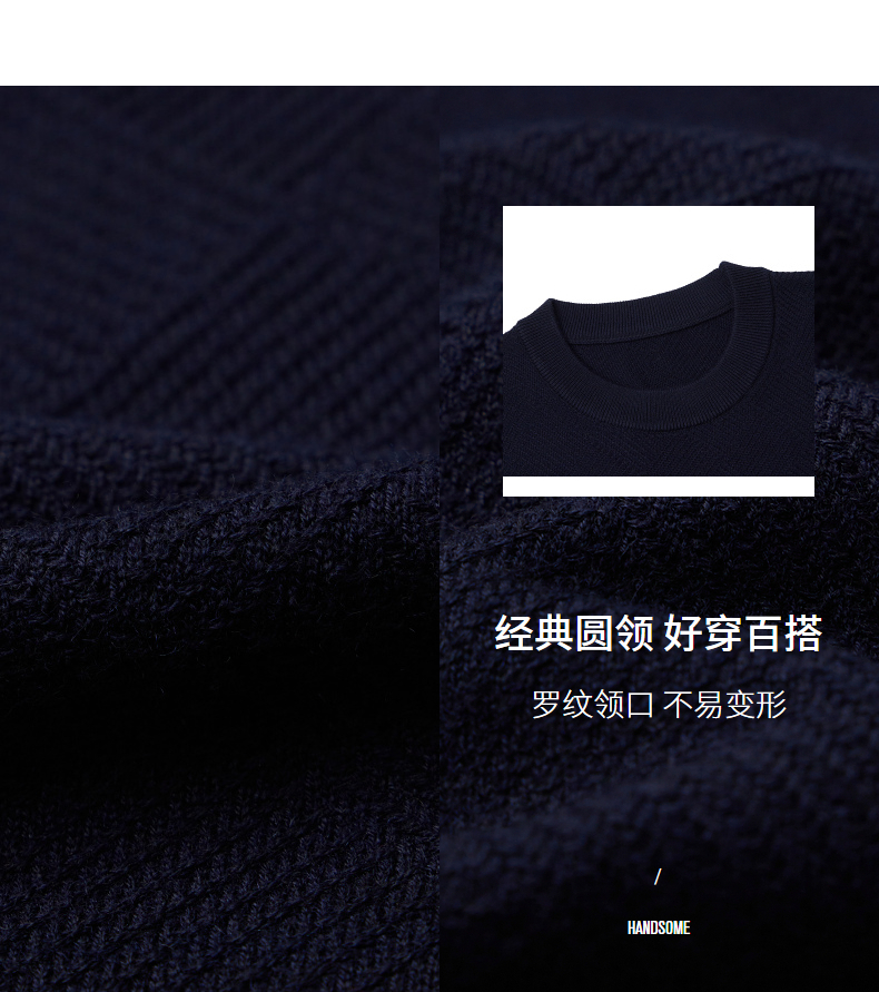 柒牌男装圆领毛衣男2024秋冬新款休闲百搭肌理提花男士保暖羊毛衫 127Y70020