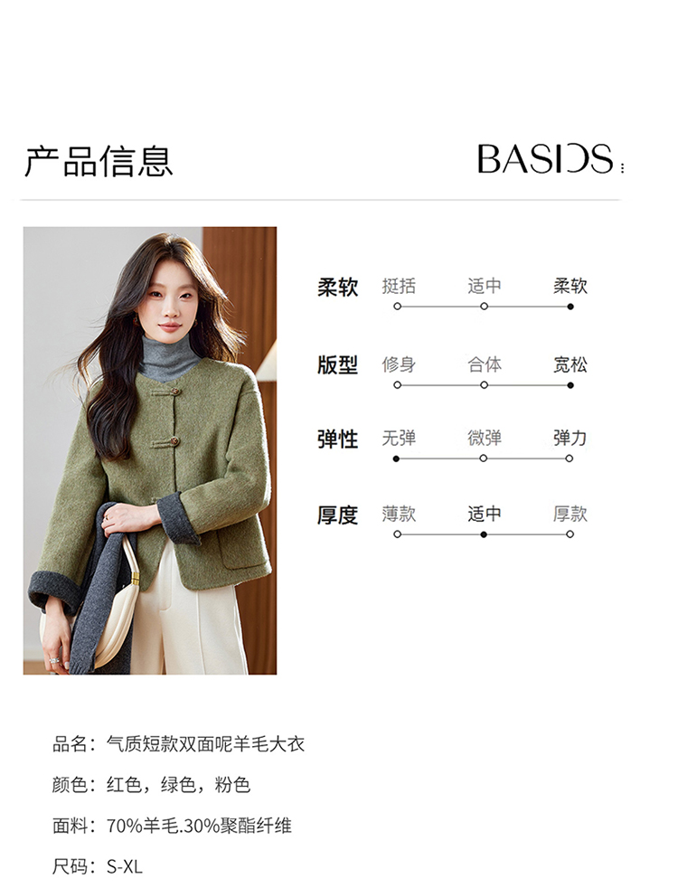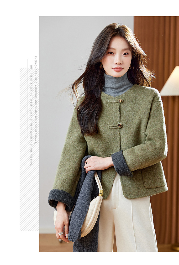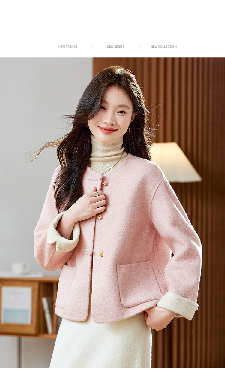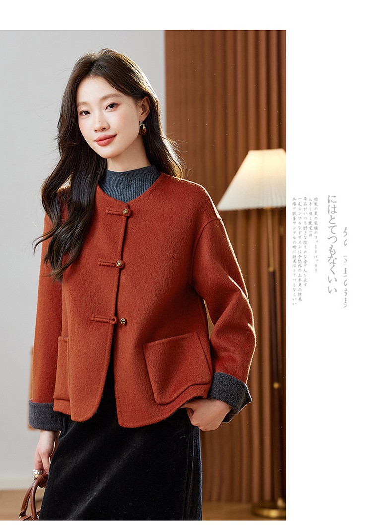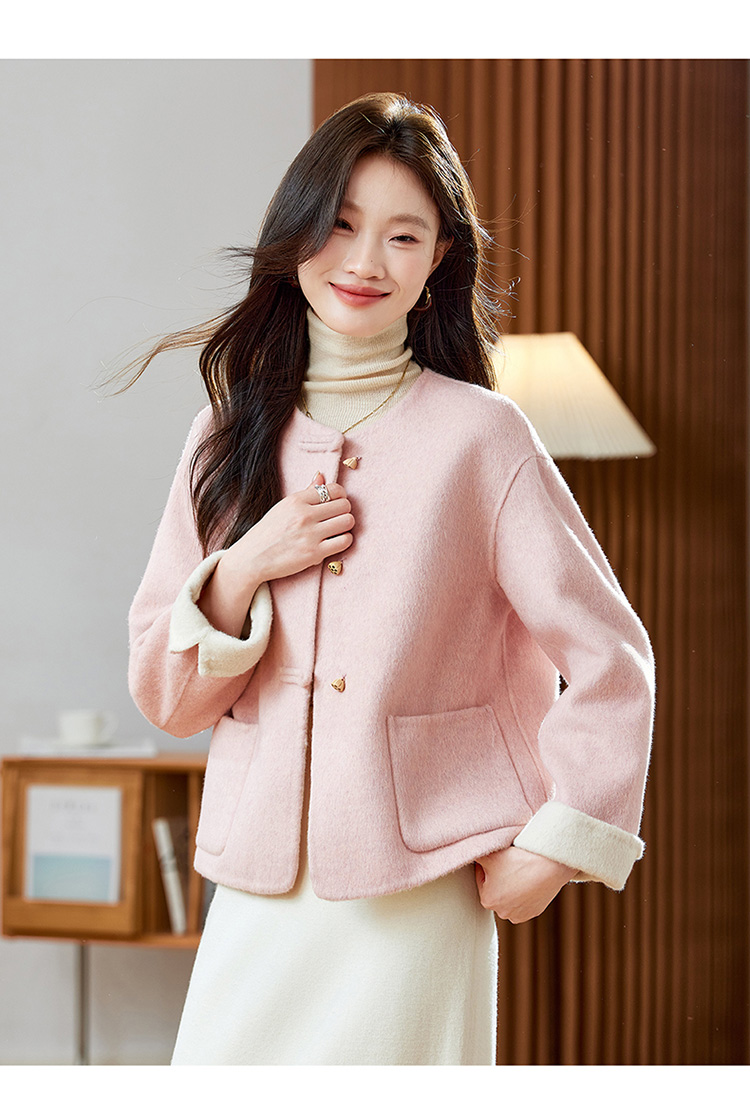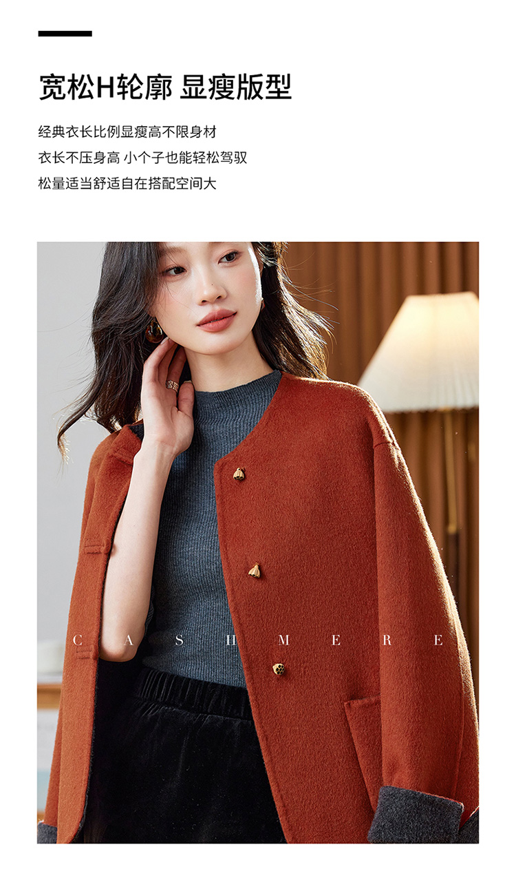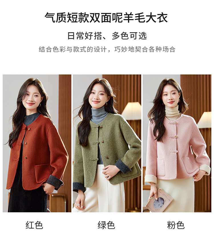 短款毛呢外套时尚休闲,宽松显瘦气质绵羊毛呢子大衣HR-ZYIF2635