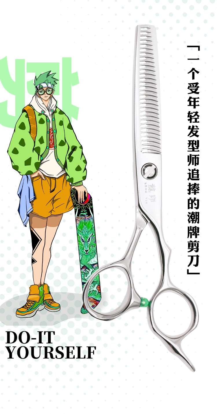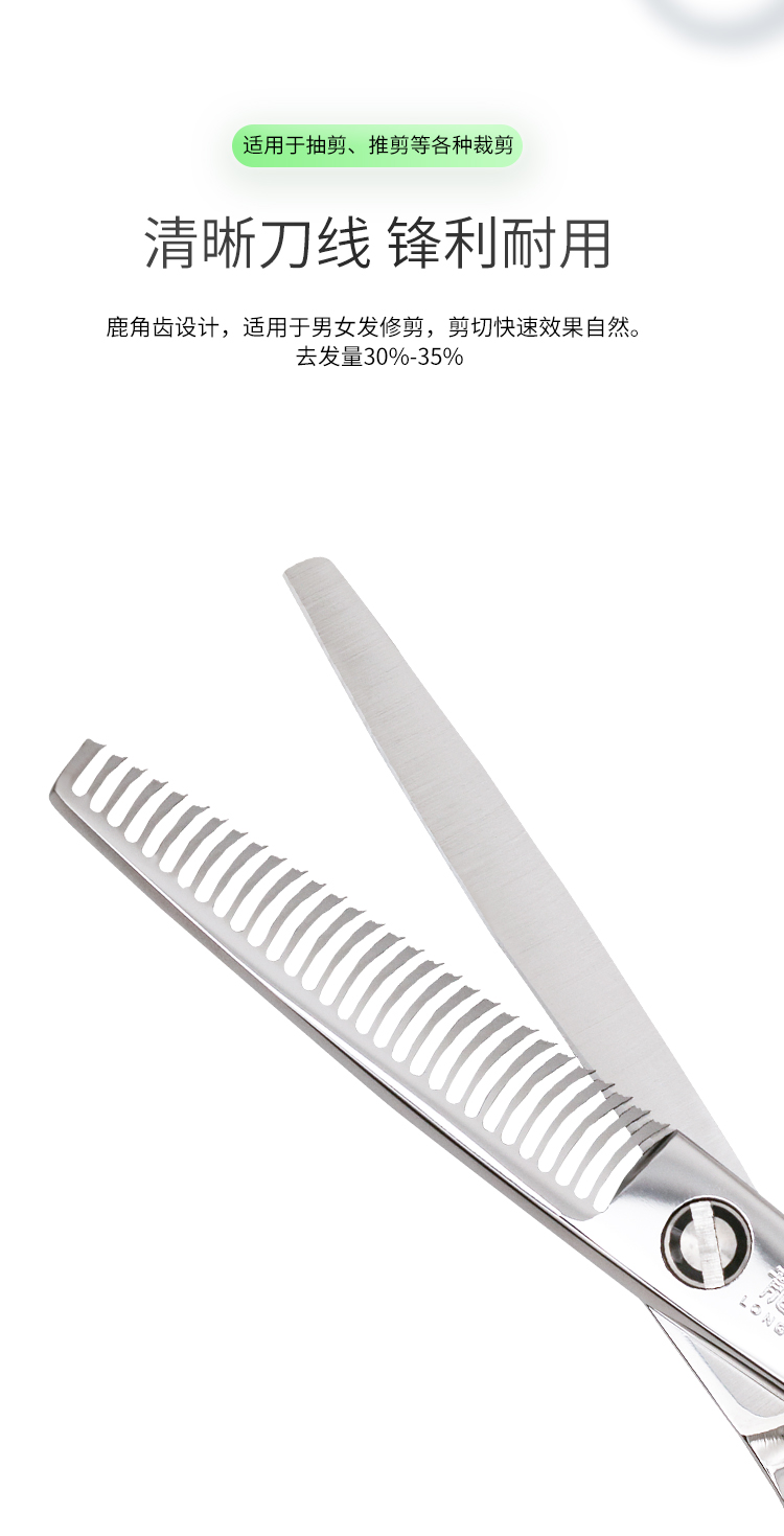 ZEBRA斑马牙剪ZX49 去发量50%-60%男发大宽齿鹿角牙剪 鹿角齿宽齿型设计适用于男发修剪,剪切有力效果自然。