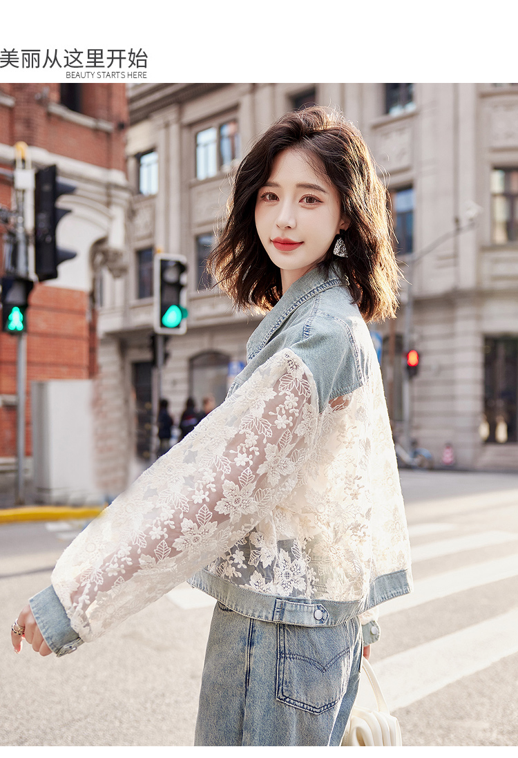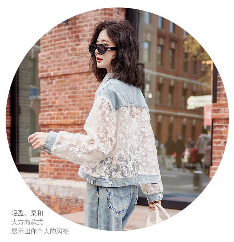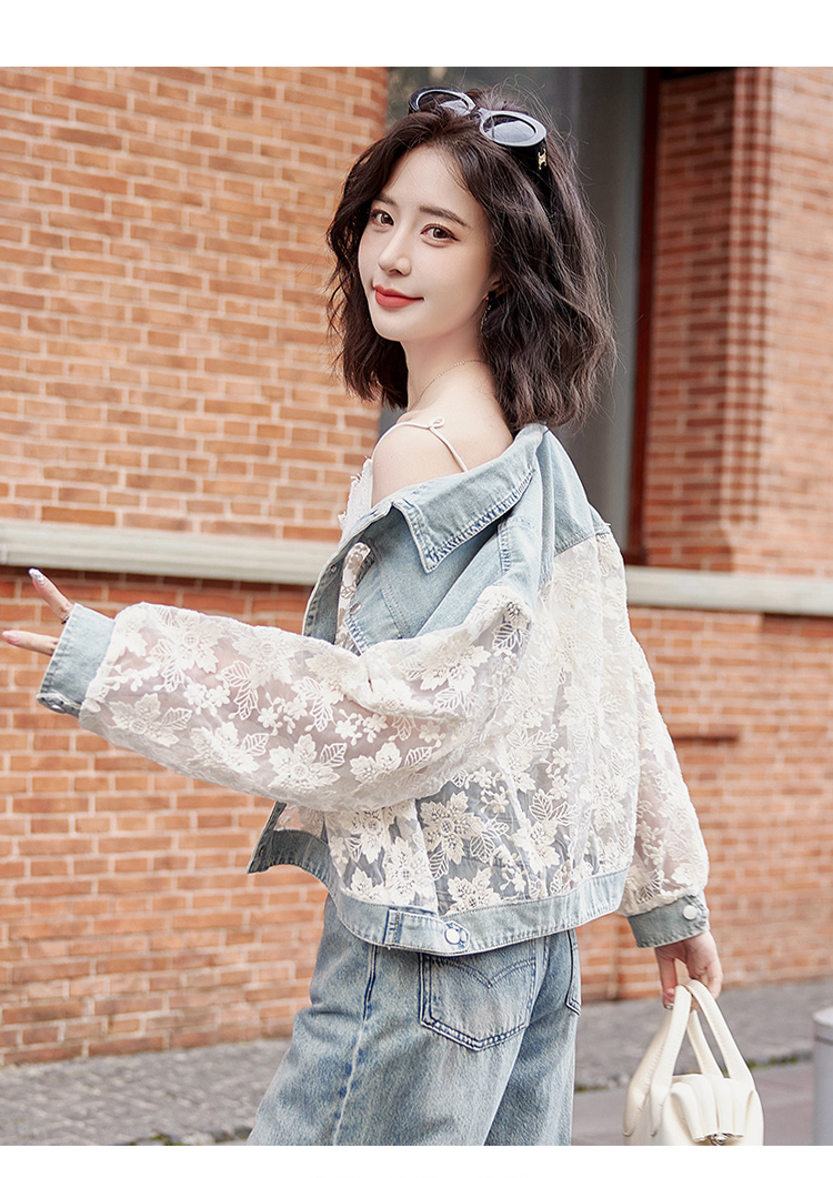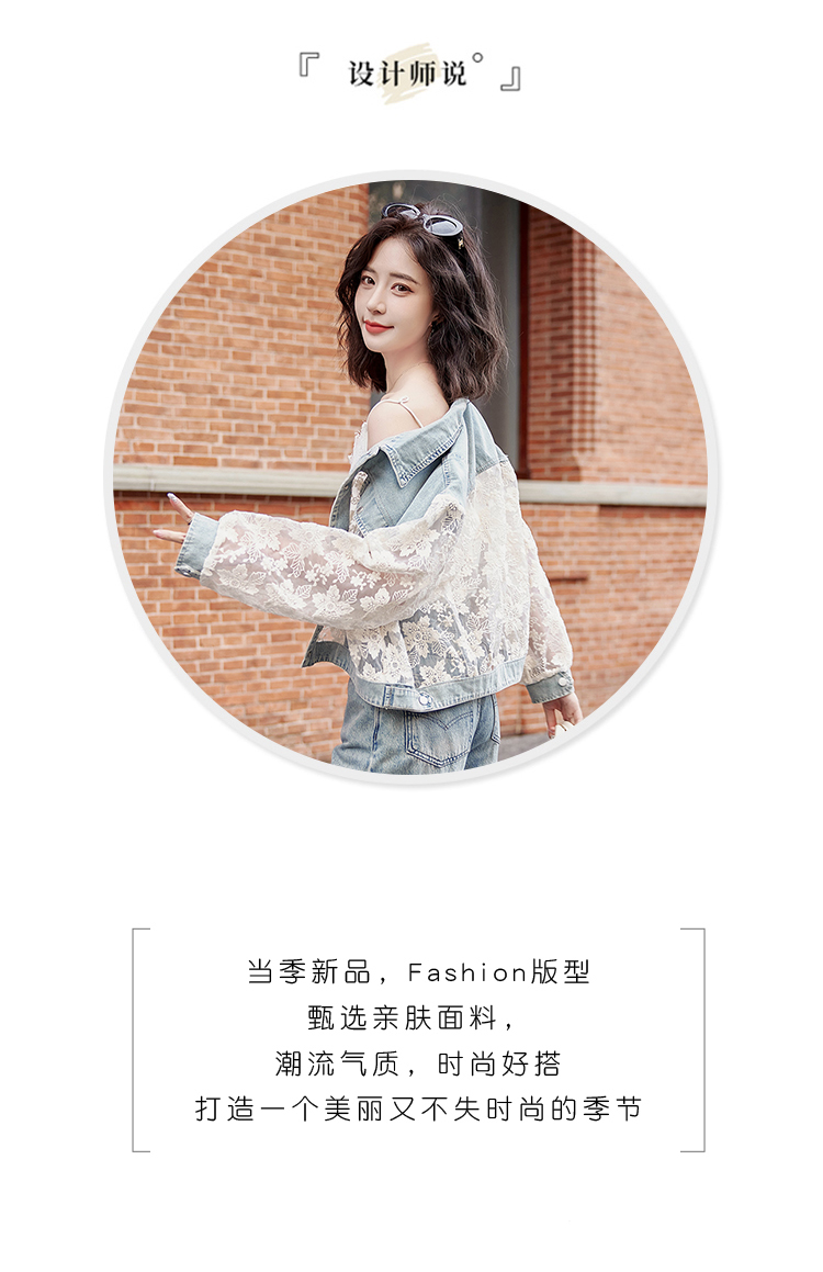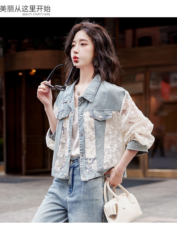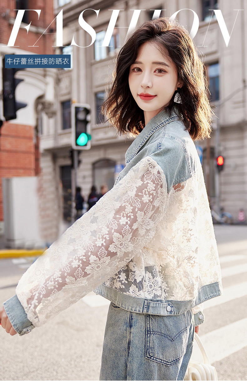 透视防晒衣,蕾丝牛仔拼接薄款短外套HR-BX2553