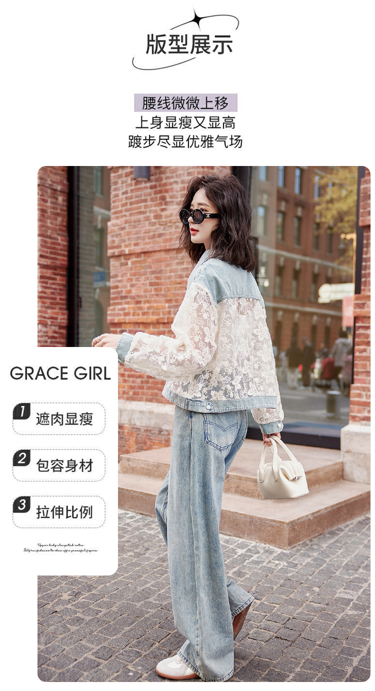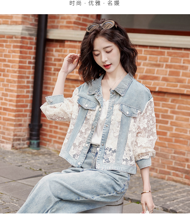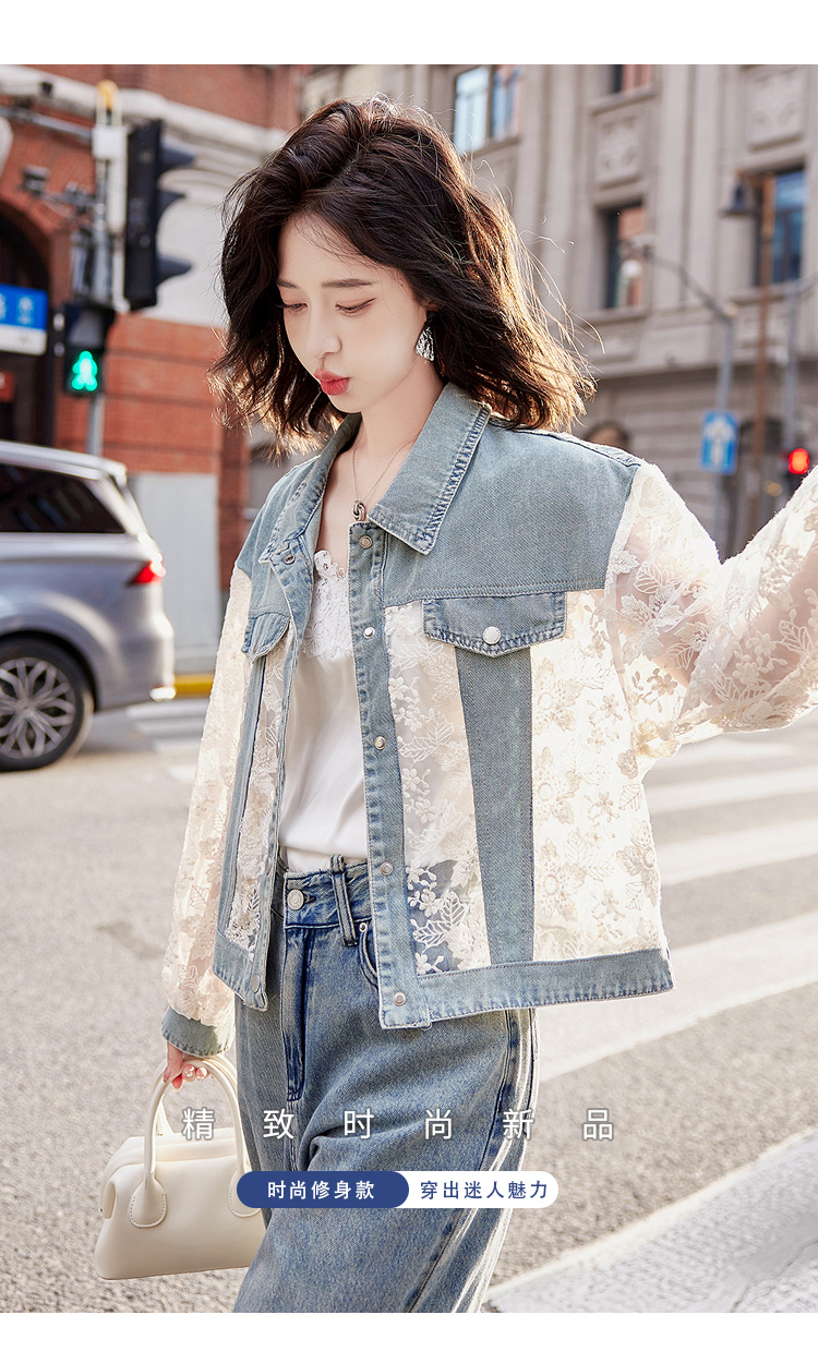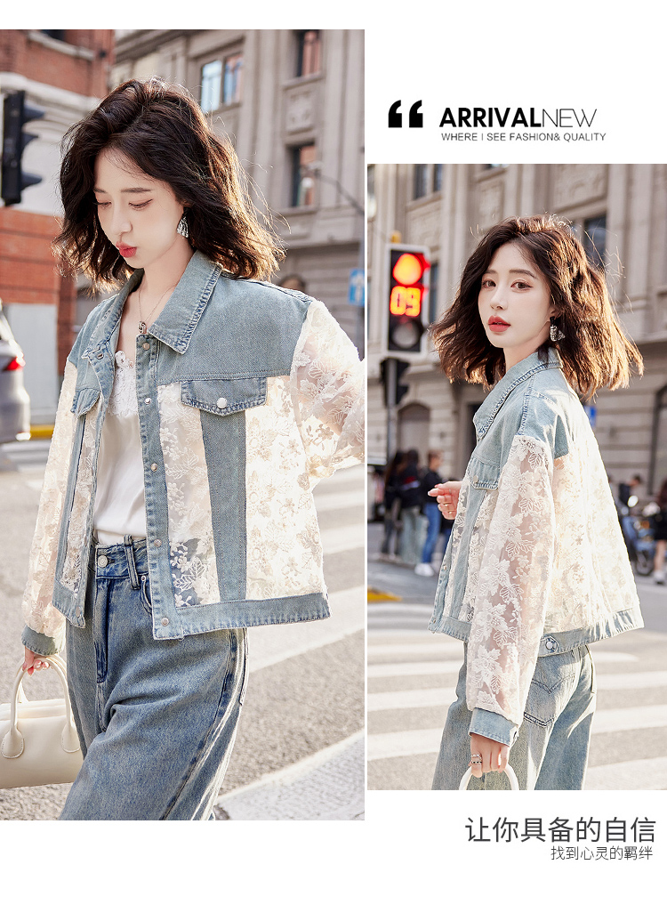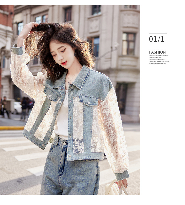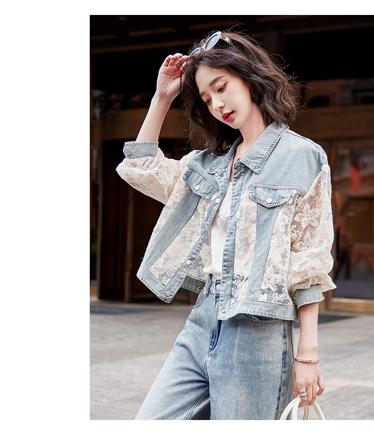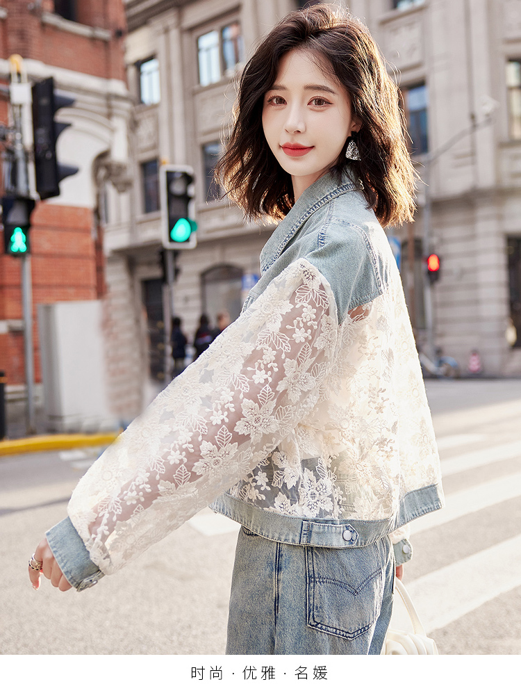 透视防晒衣,蕾丝牛仔拼接薄款短外套HR-BX2553