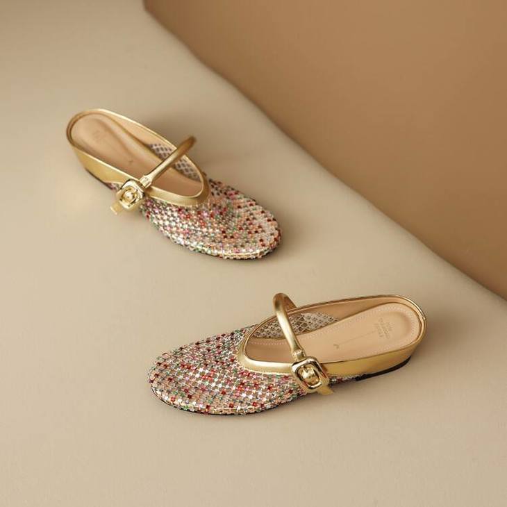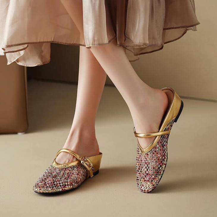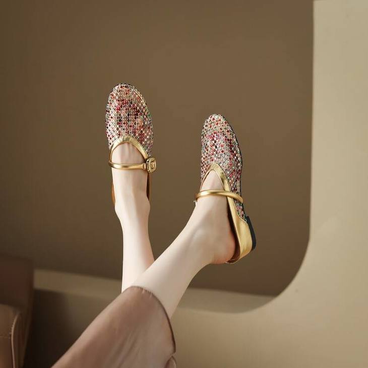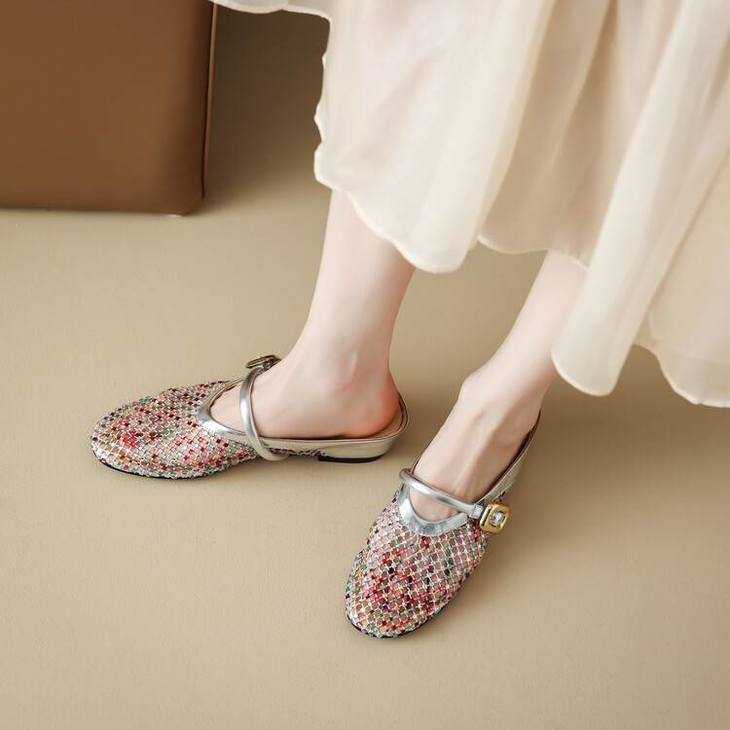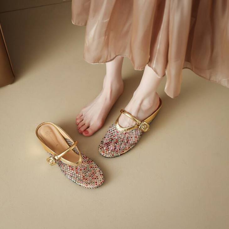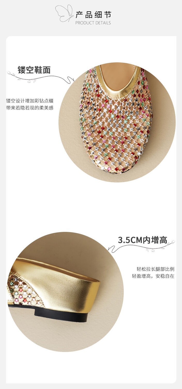 货号:4287鞋面材质:羊皮+网钻内里:羊皮鞋垫:羊皮鞋底材质:牛筋底尺码:34--39颜色: 金色 银色 黑色