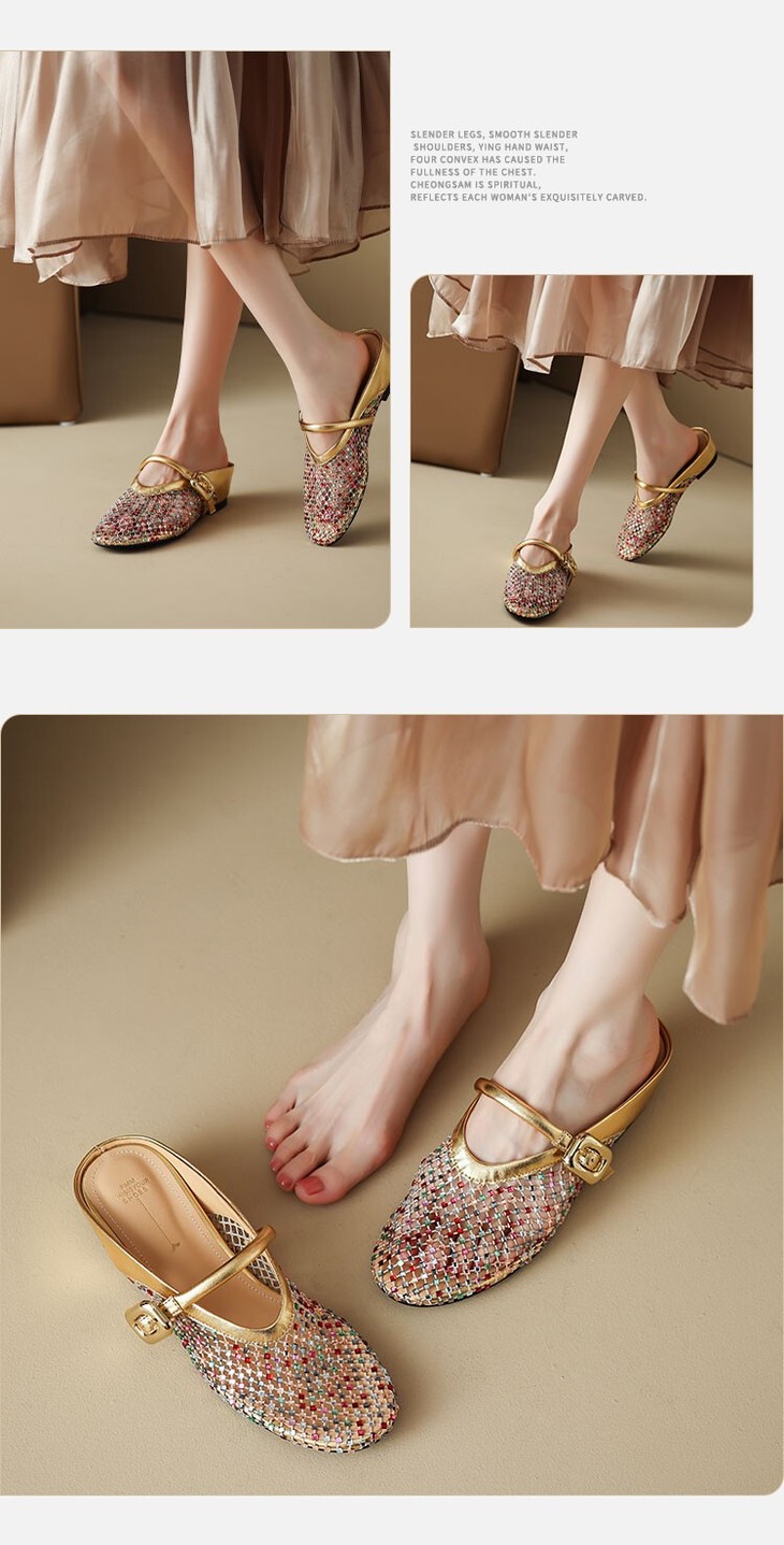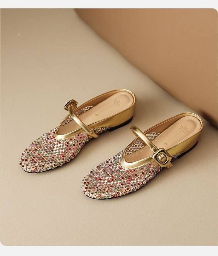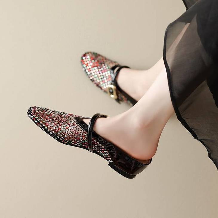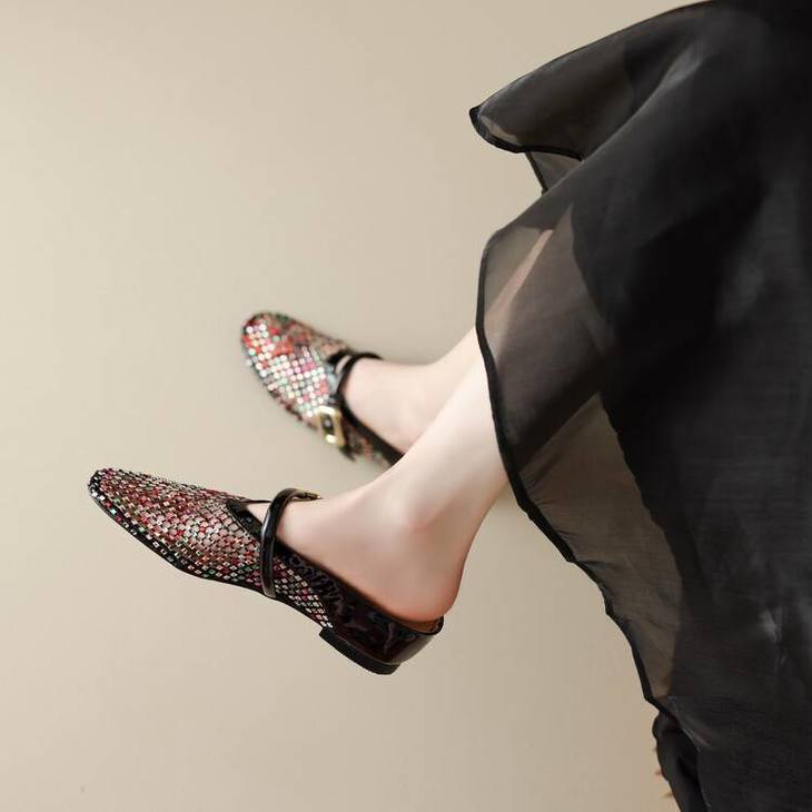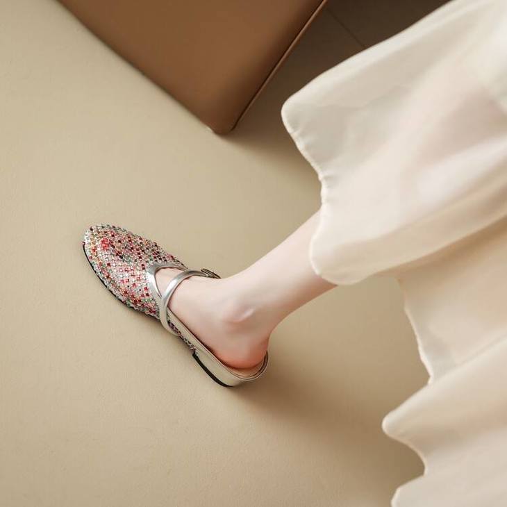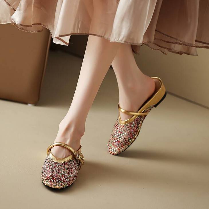 货号:4287鞋面材质:羊皮+网钻内里:羊皮鞋垫:羊皮鞋底材质:牛筋底尺码:34--39颜色: 金色 银色 黑色