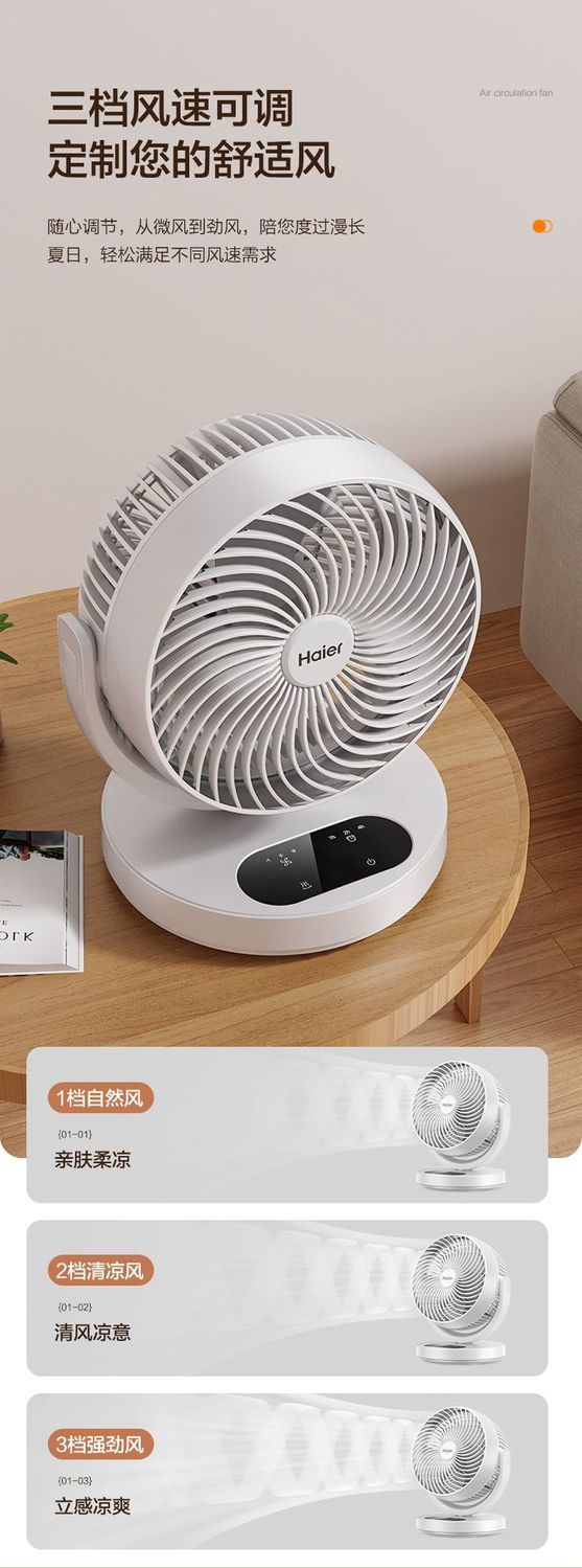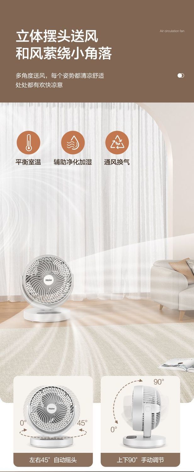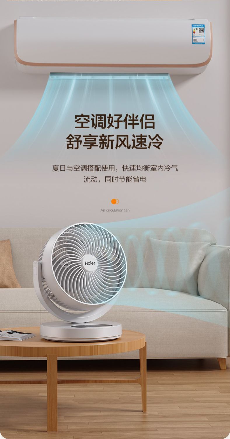 海尔空气循环扇家用桌面台式迷你宿舍电风扇床上台扇轻音小型风扇