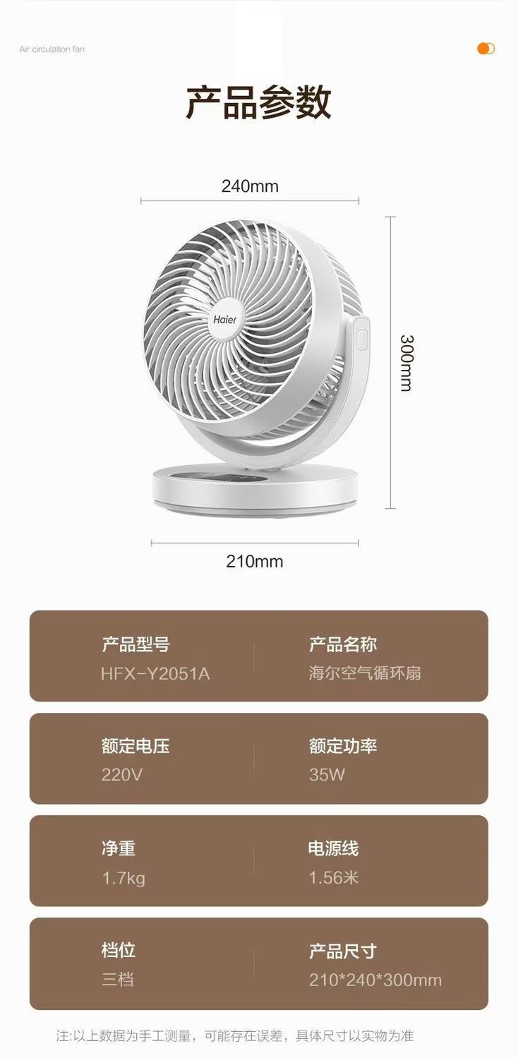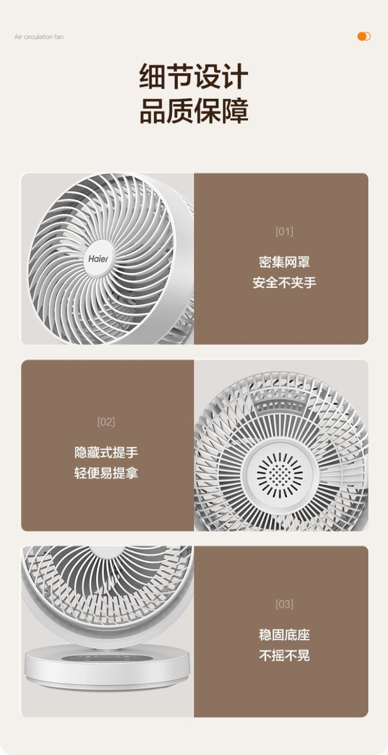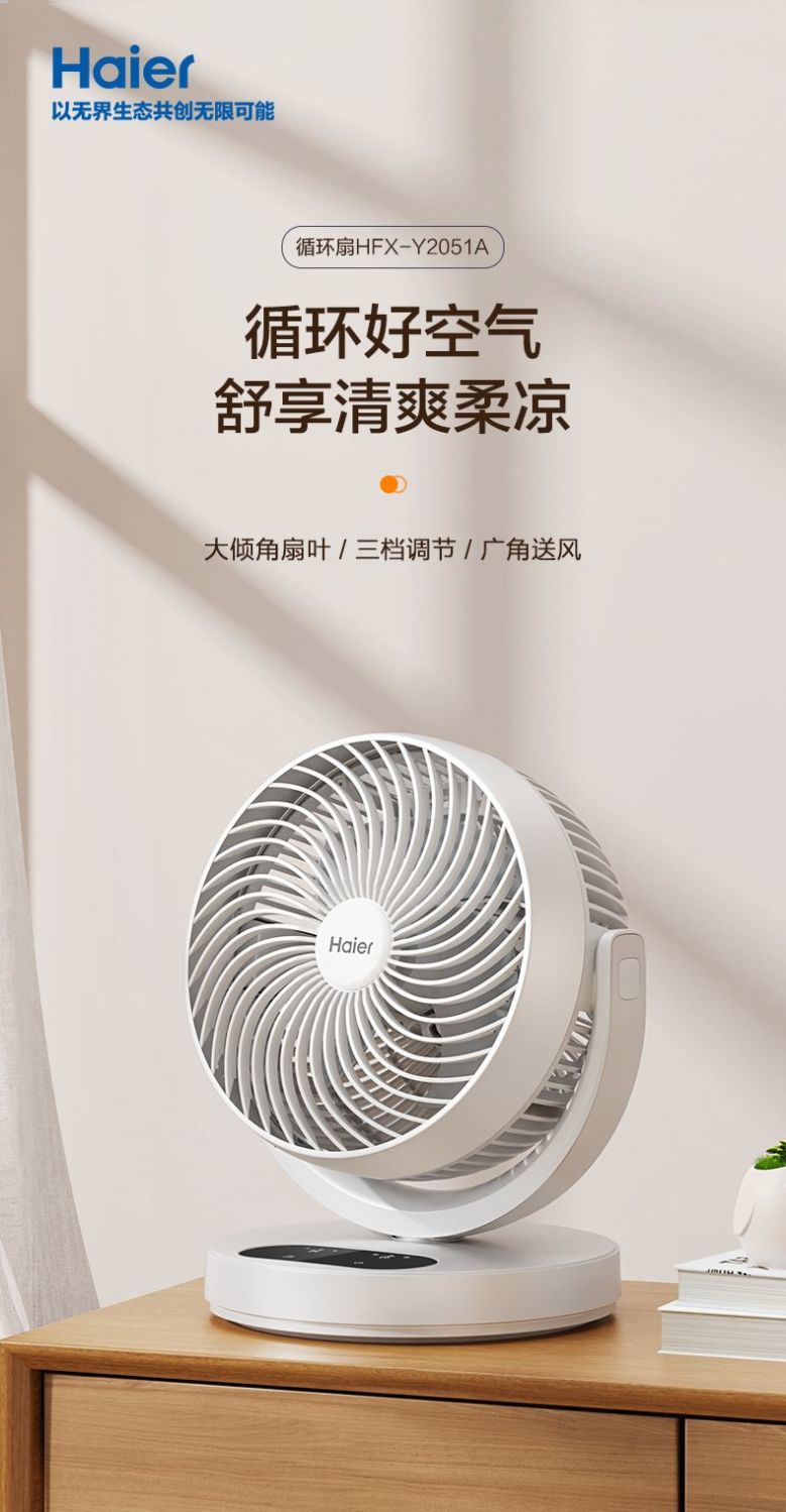海尔空气循环扇家用桌面台式迷你宿舍电风扇床上台扇轻音小型风扇