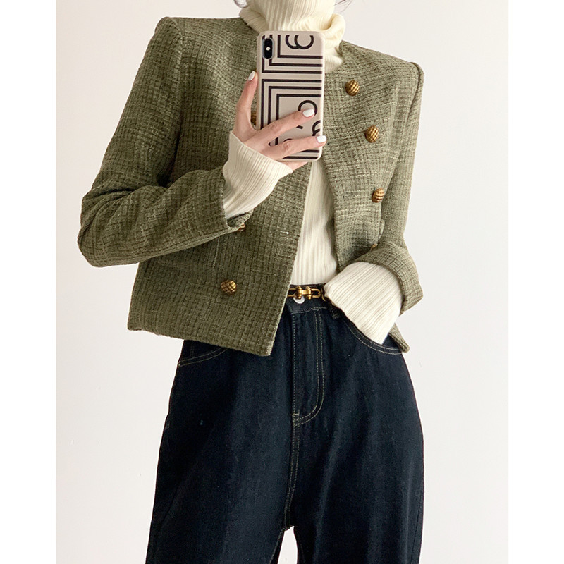 秋冬【复古小香风粗花呢外套】小个子法式短款上衣 氛围感