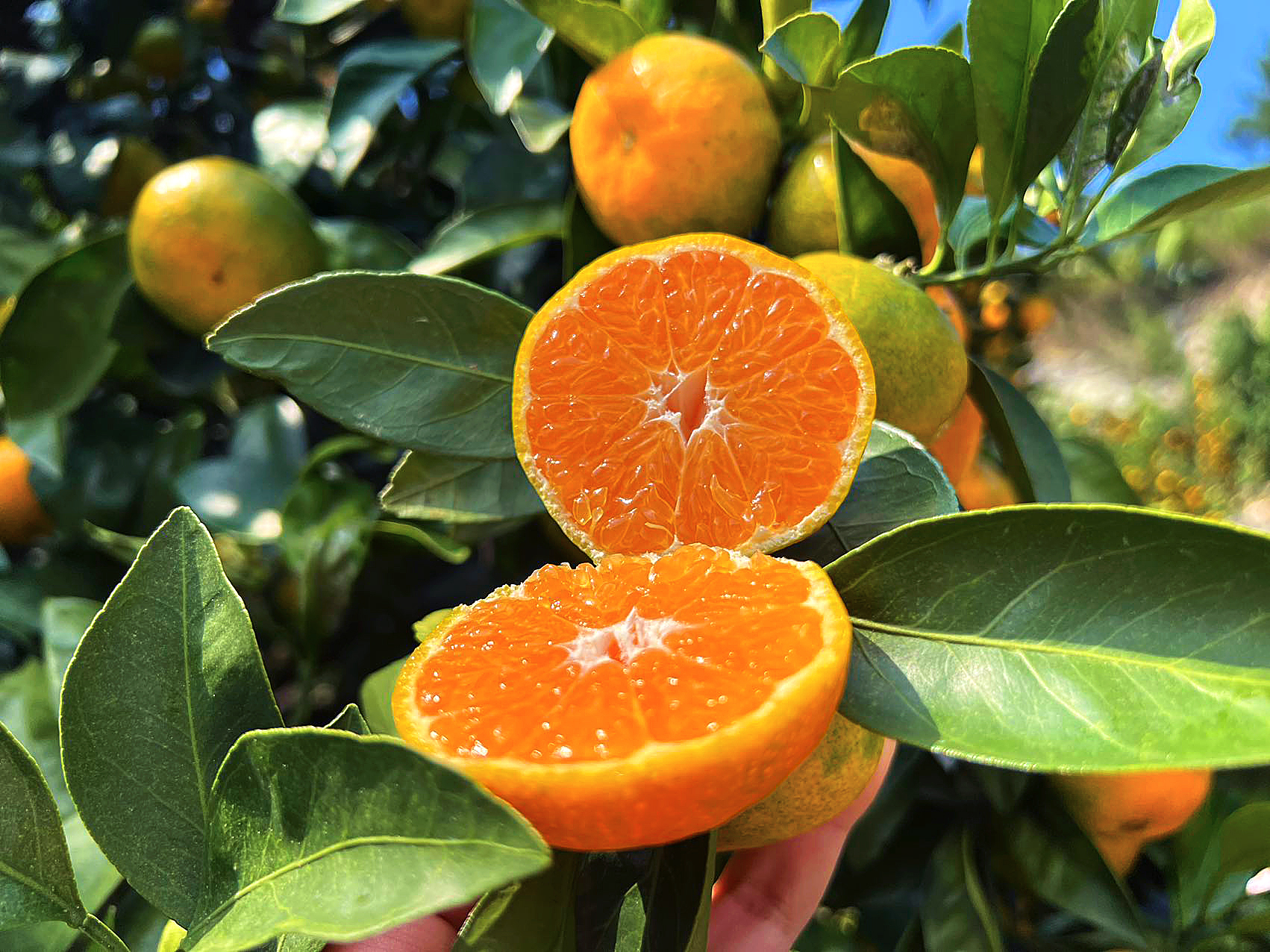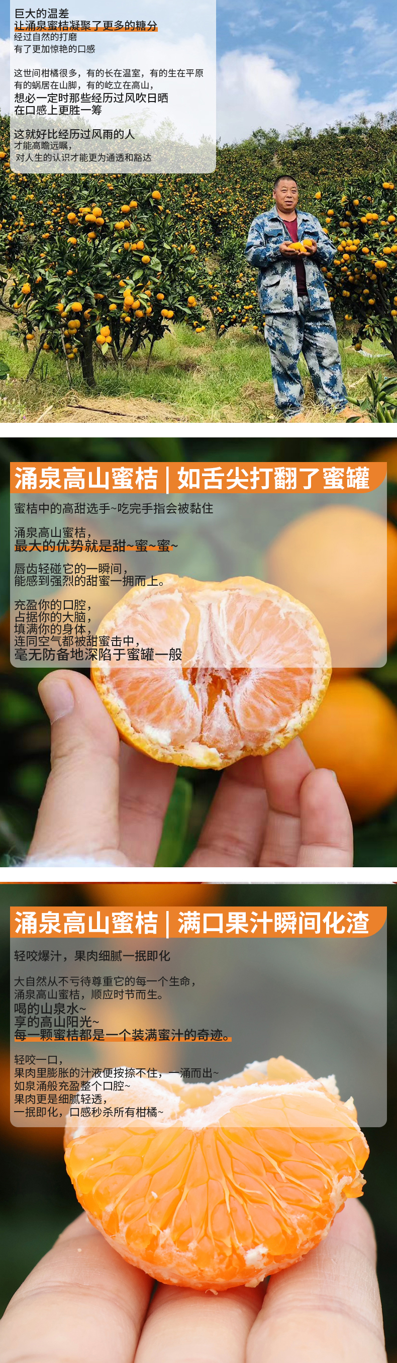 2.涌泉蜜桔露天种植,果皮经历风吹日晒、枝叶剐蹭,可能会有一些疤痕、斑纹,不影响食用,不在售后范围内。