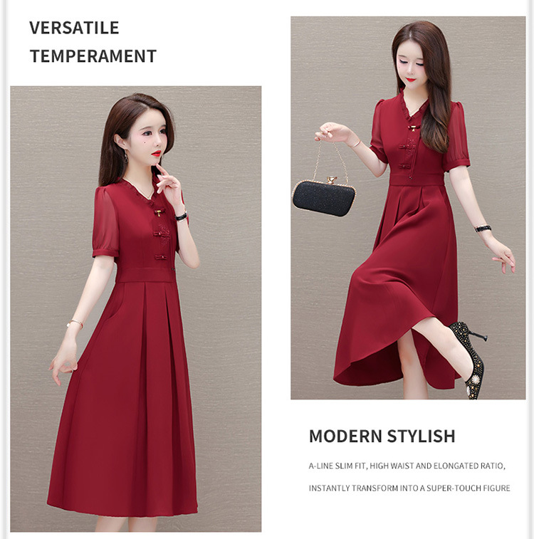 时尚气质,潮流纯色中长款连衣裙QYM-LRX-1712438-Y