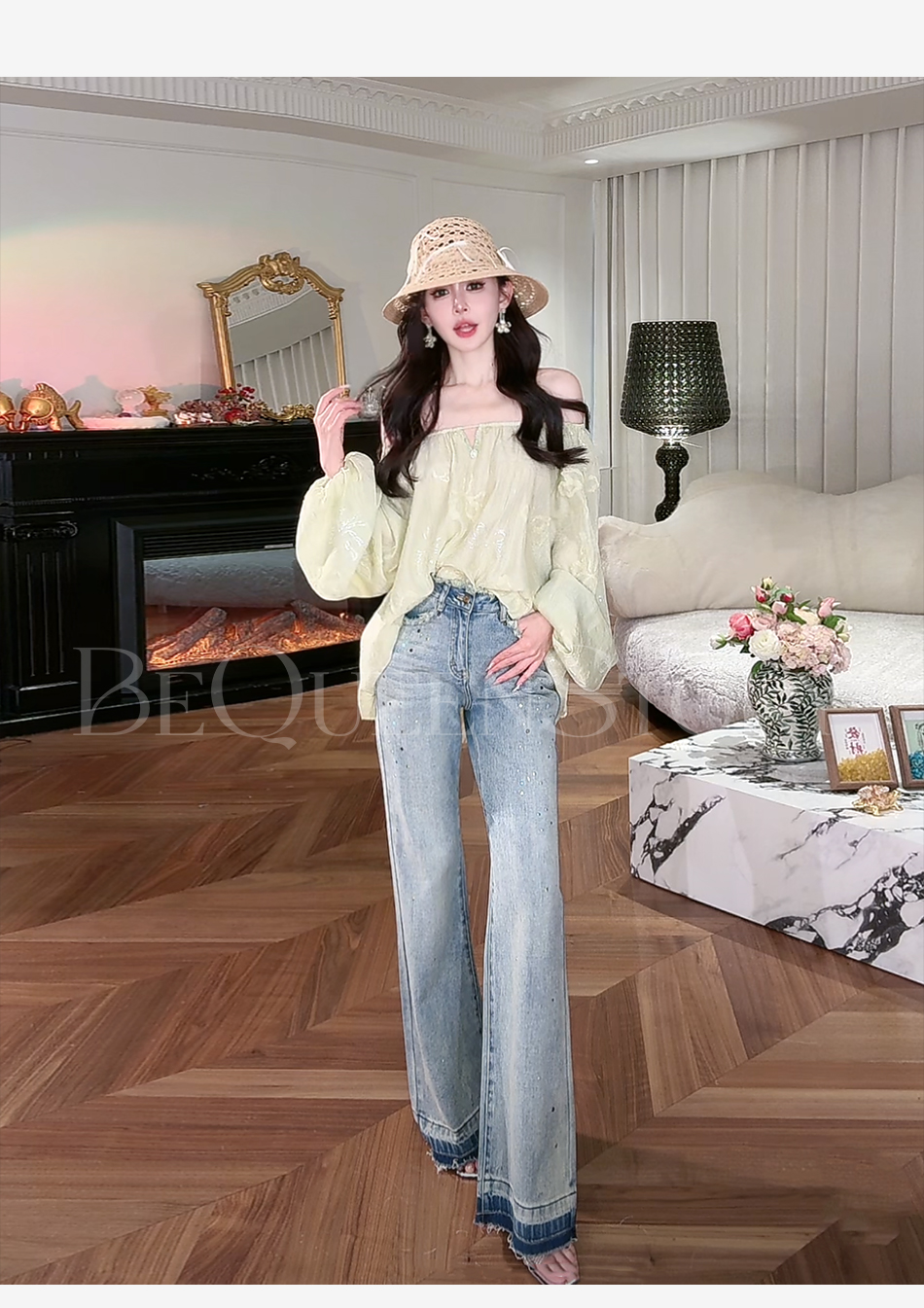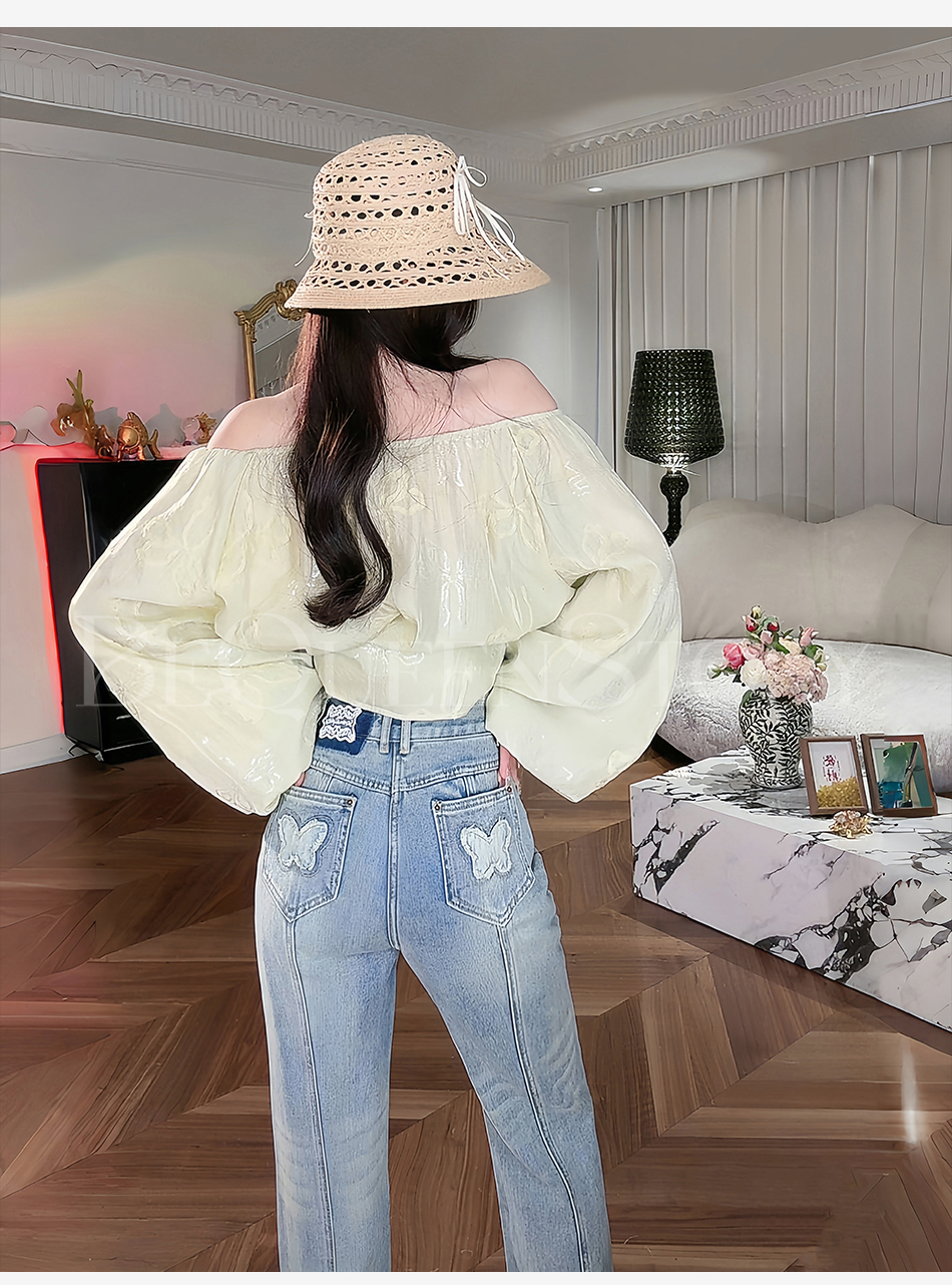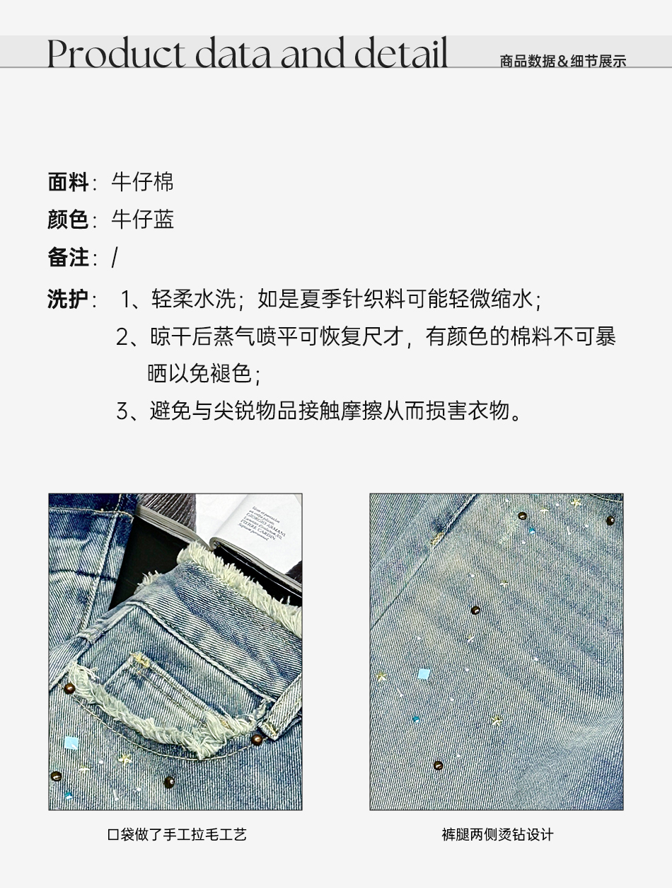 余潇潇【冰钻彩虹糖】烫钻撞色设计直筒牛仔裤精致复古2025春季新款