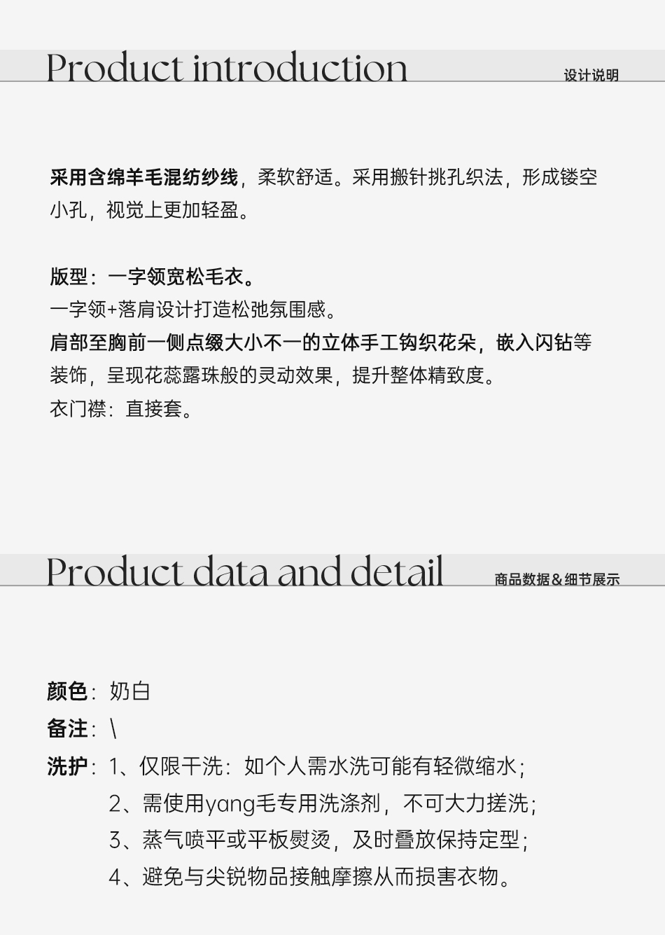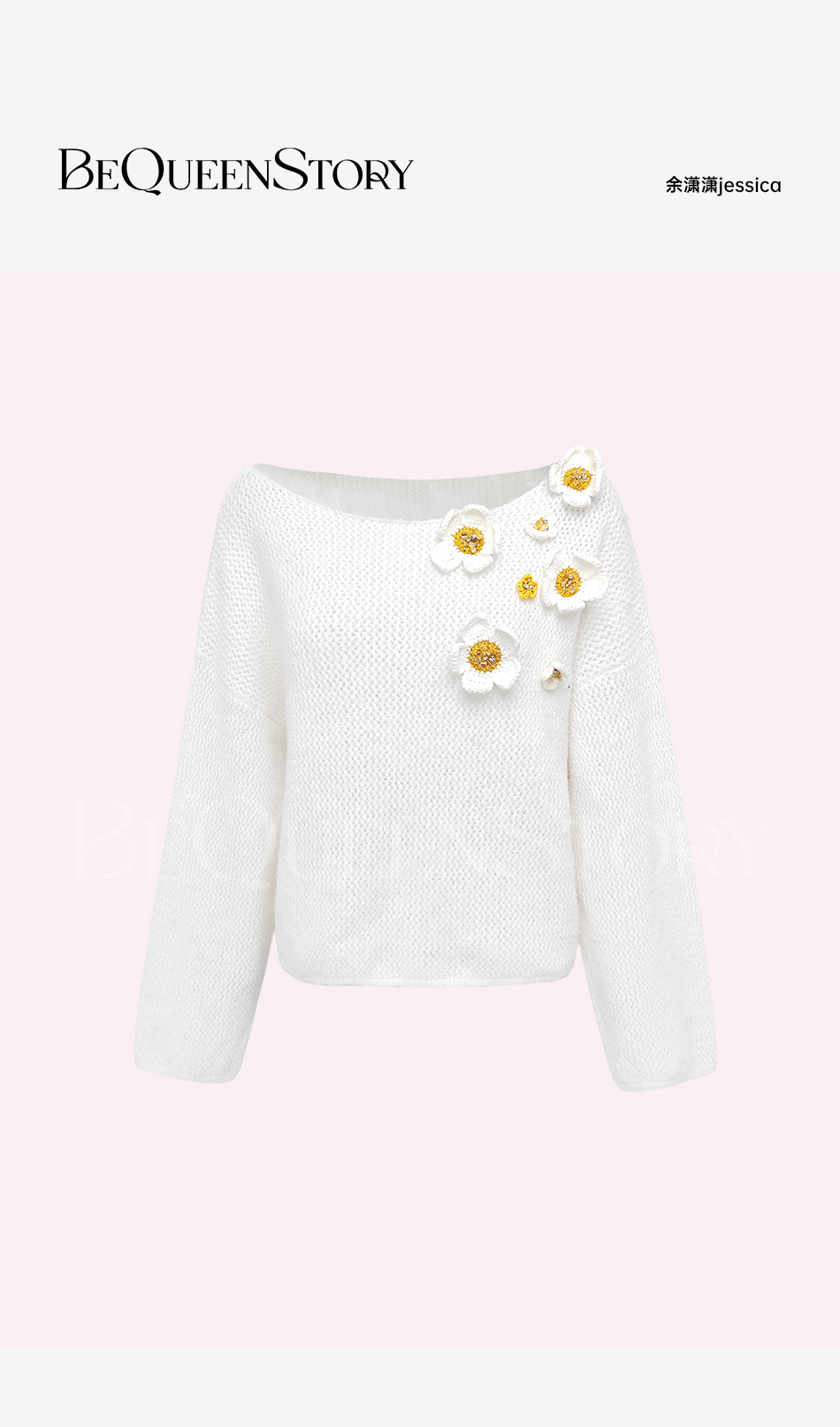 余潇潇【花间密语】时尚百搭手工立体钩织花朵镂空一字领宽松毛衣 商品图2