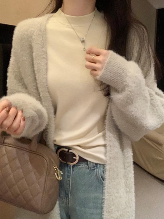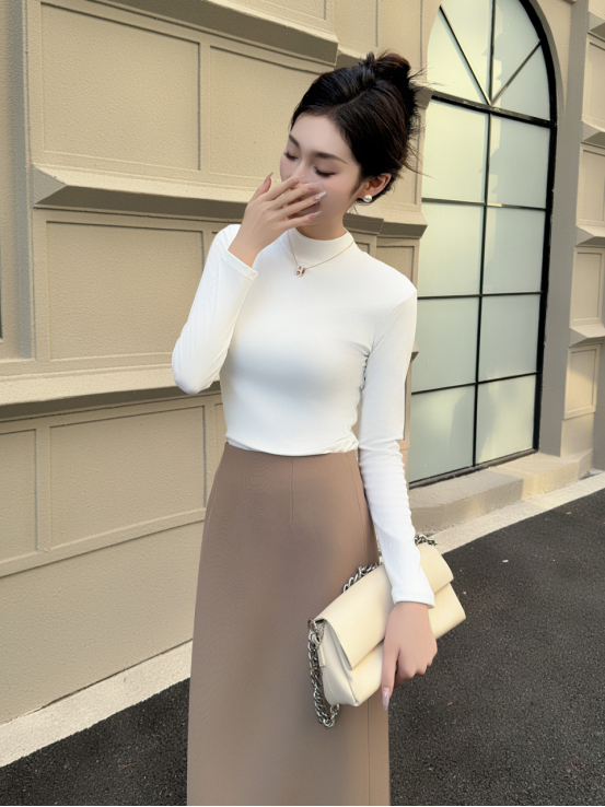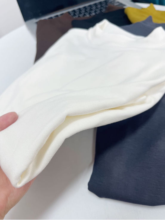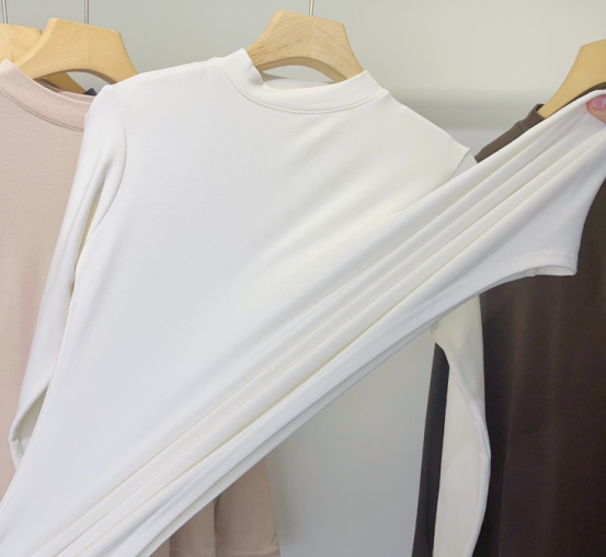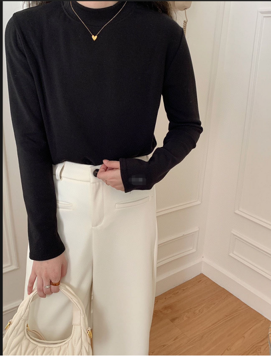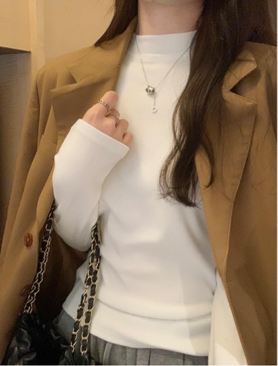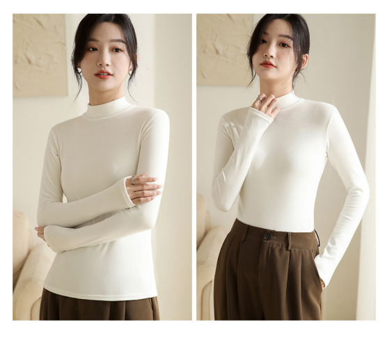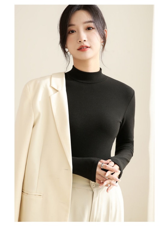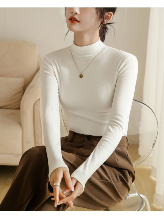白色🥯 实拍无滤镜!纯净白像牛奶肌般清爽,微粒绒磨毛带轻微柔光,贴身穿不透肉,搭西装、针织开衫超显干净! 秋冬必备白月光打底!椰油护理面料摸着软乎乎,小立领精致不呆板,内搭大衣露出领口超有层次感~