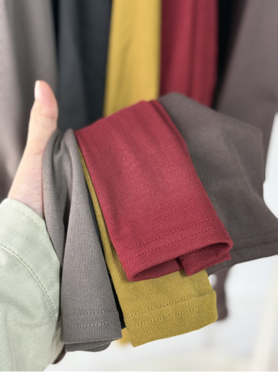 实拍面料着色!颜色均匀无色差,磨毛工艺让色彩更有肌理感,白色不透肉、深色不沾灰~ 光泽感实拍!不同光线下颜色依旧饱满,椰油护理让面料自带柔和光泽,高级感一眼可见~