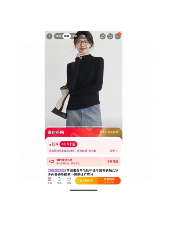 :某宝售价𝟏𝟑𝟗 同货源只卖¥ 谁没买我都会伤心的 某宝同款¥139的价格 谁见谁夸的打底衫