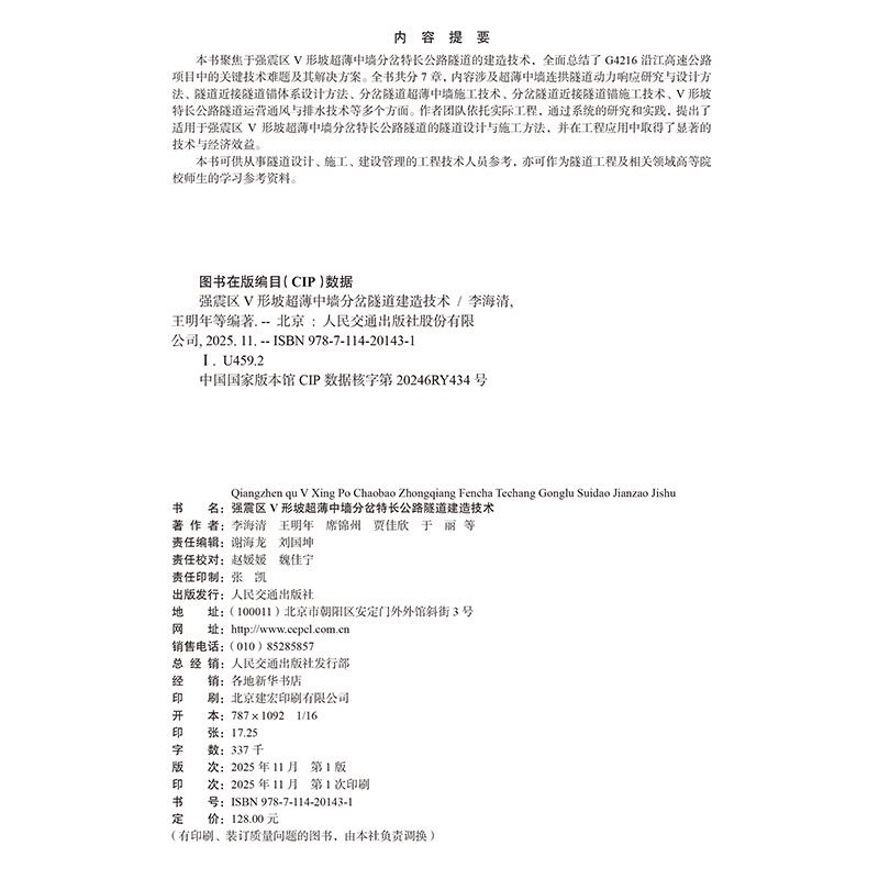 书名:强震区V形坡超薄中墙分岔特长公路隧道建造技术