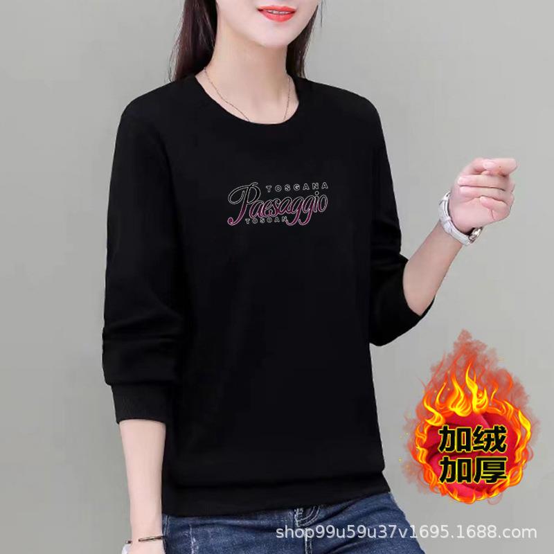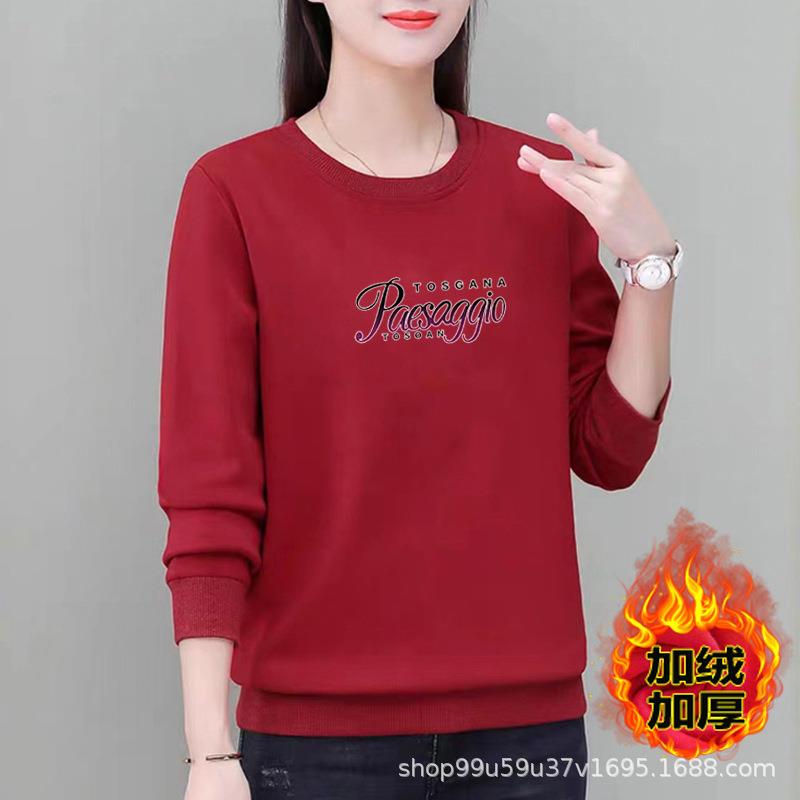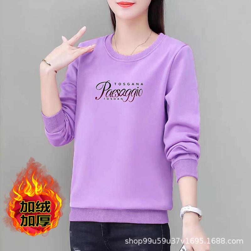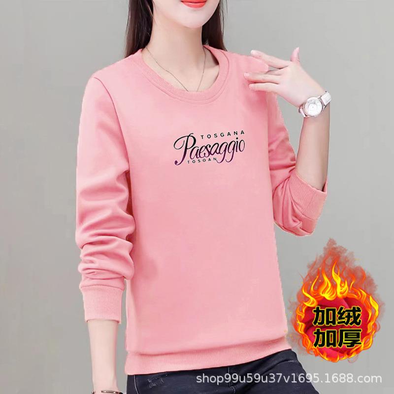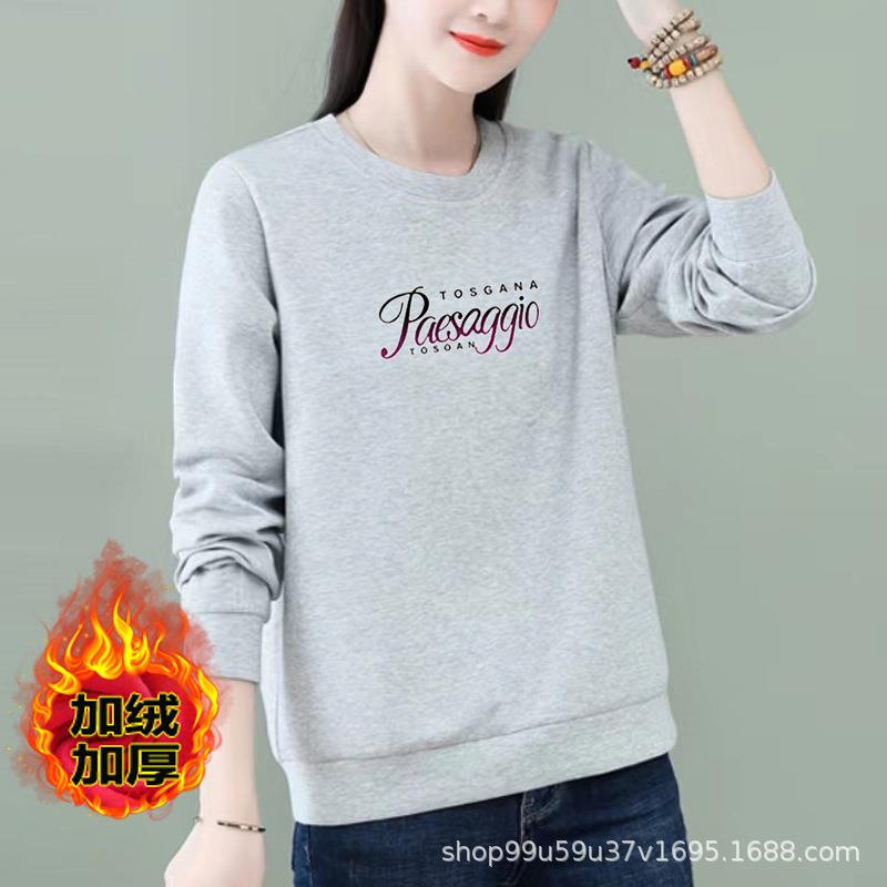 加绒圆领卫衣棉质女式外穿休闲宽松秋冬长袖上衣印花显瘦运动衣