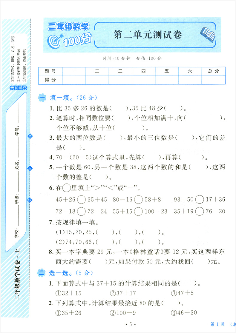 尤博士大考卷 二年级数学试卷 过关冲刺100分 数学 2年级上册/二年级第一学期 单元卷 专项卷 期中卷 期末卷 真题卷