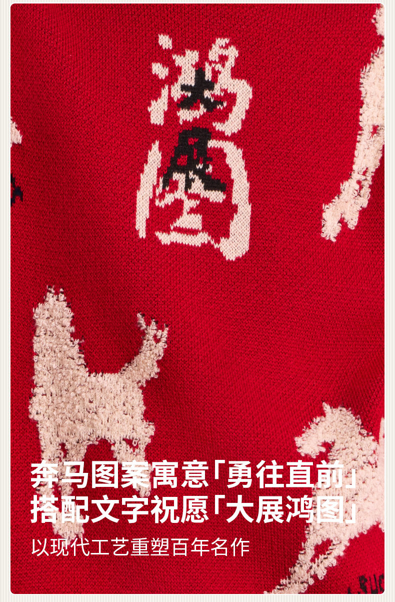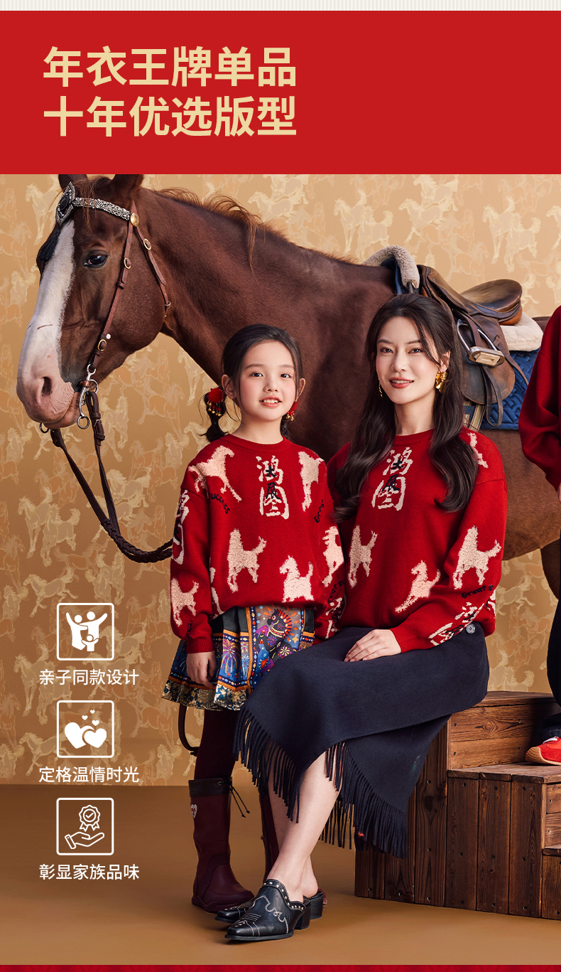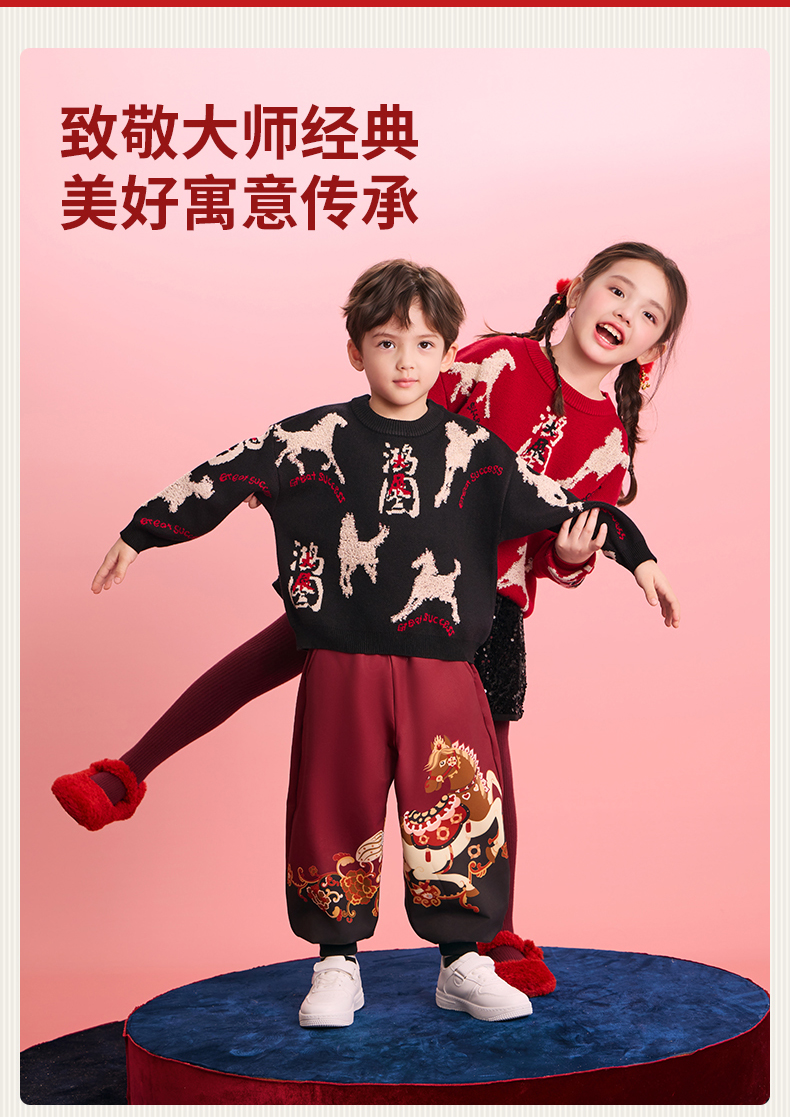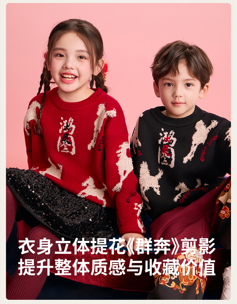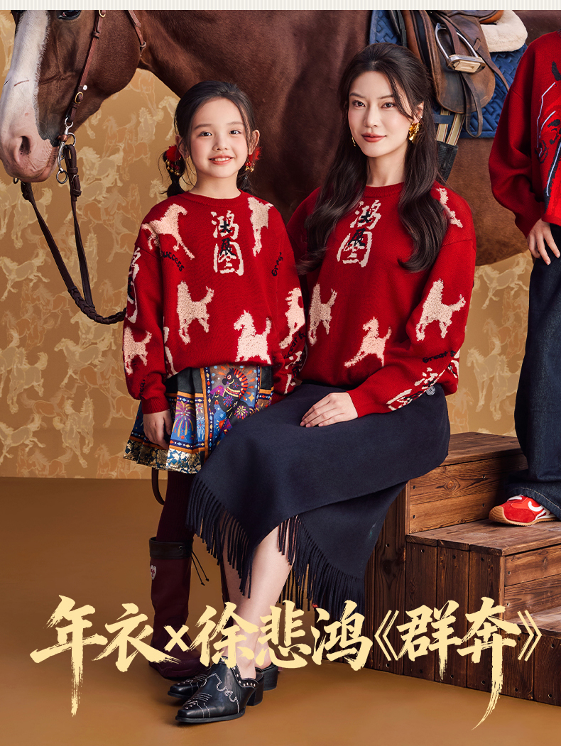 【年衣品牌团】徐悲鸿联名年衣童装女童亲子毛衣冬儿童针织衫打底鸿图群奔毛衣 1207