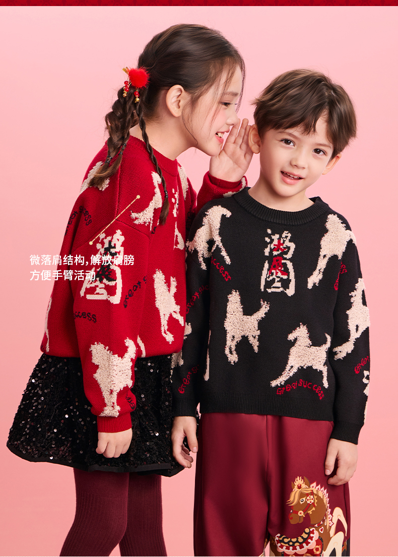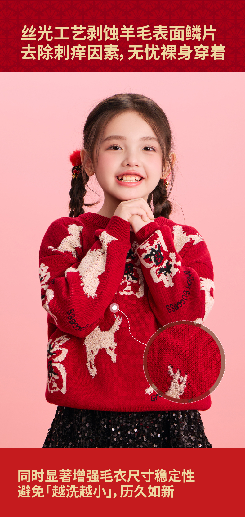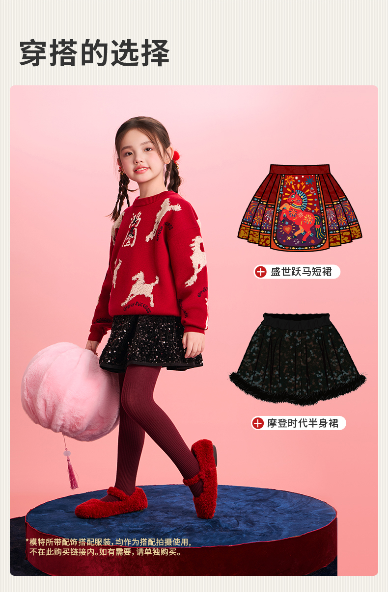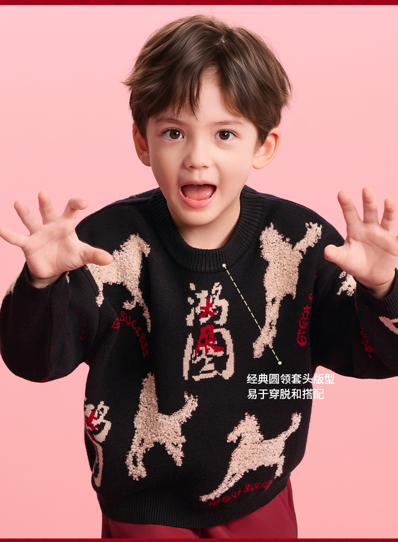 【年衣品牌团】徐悲鸿联名年衣童装女童亲子毛衣冬儿童针织衫打底鸿图群奔毛衣 1207