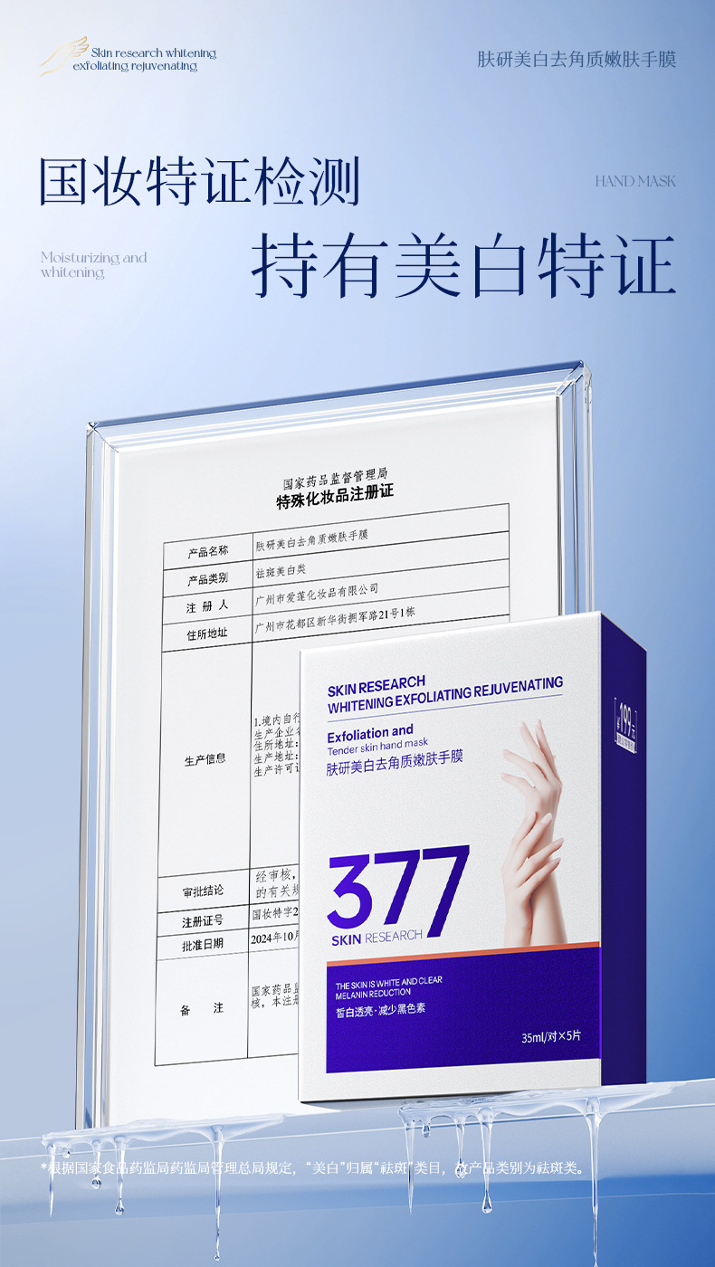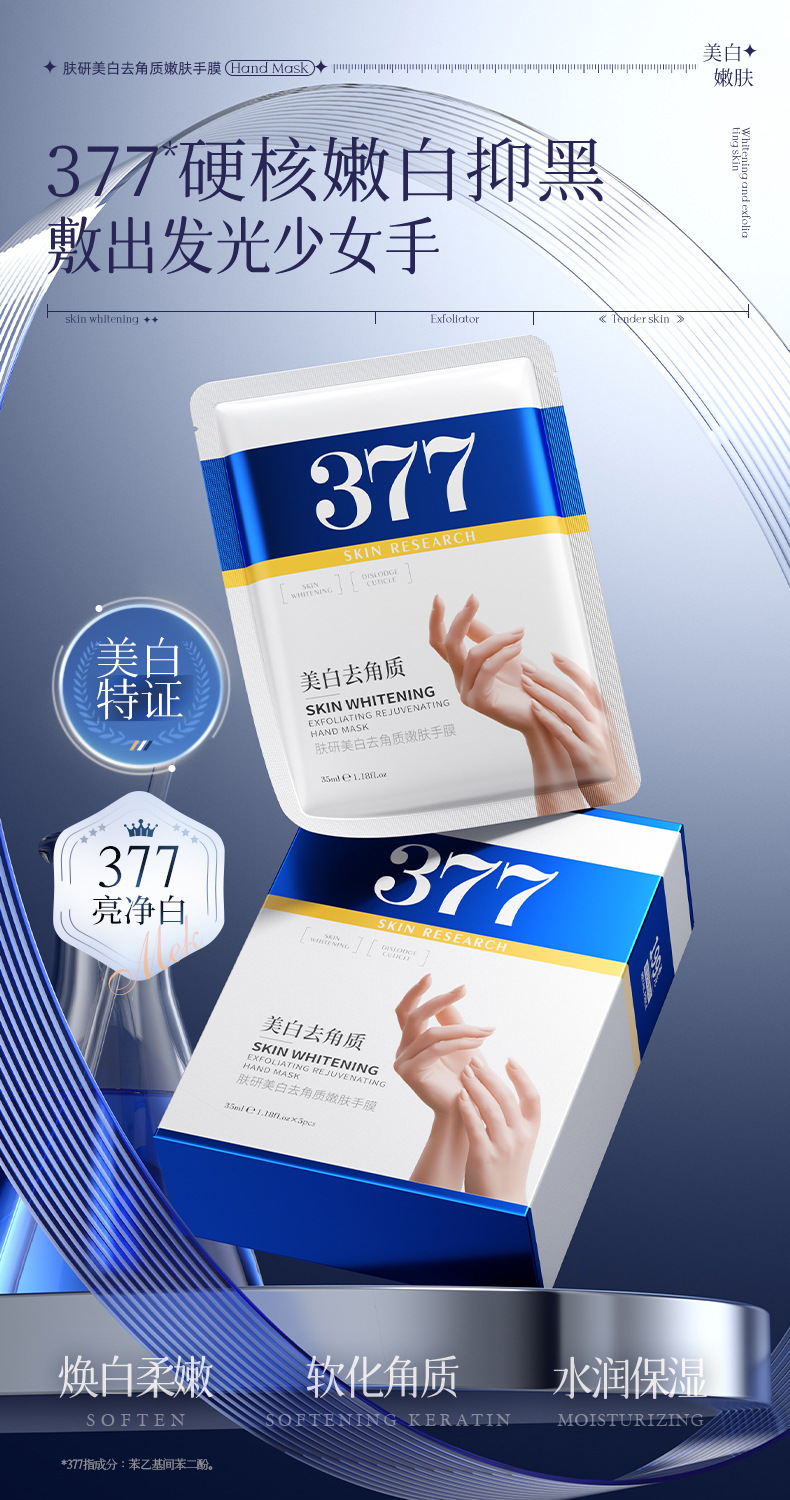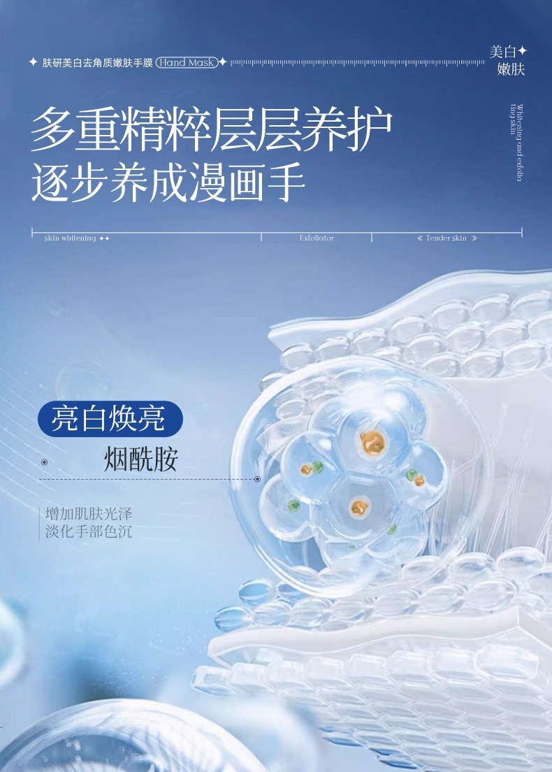 【多重精粹层层养护!逐步养成漫画手】肤研美白去角质377嫩肤手膜烟酰胺足膜颈膜滋润补水盒装手膜。rb