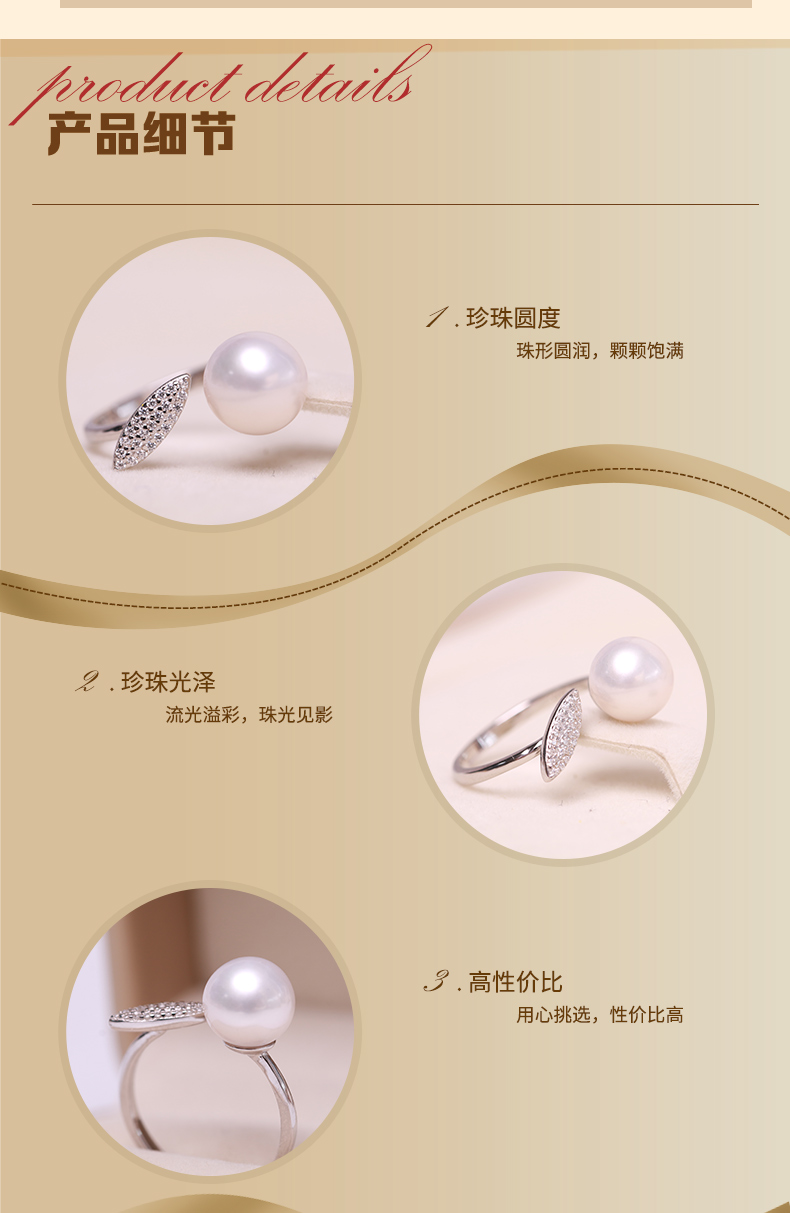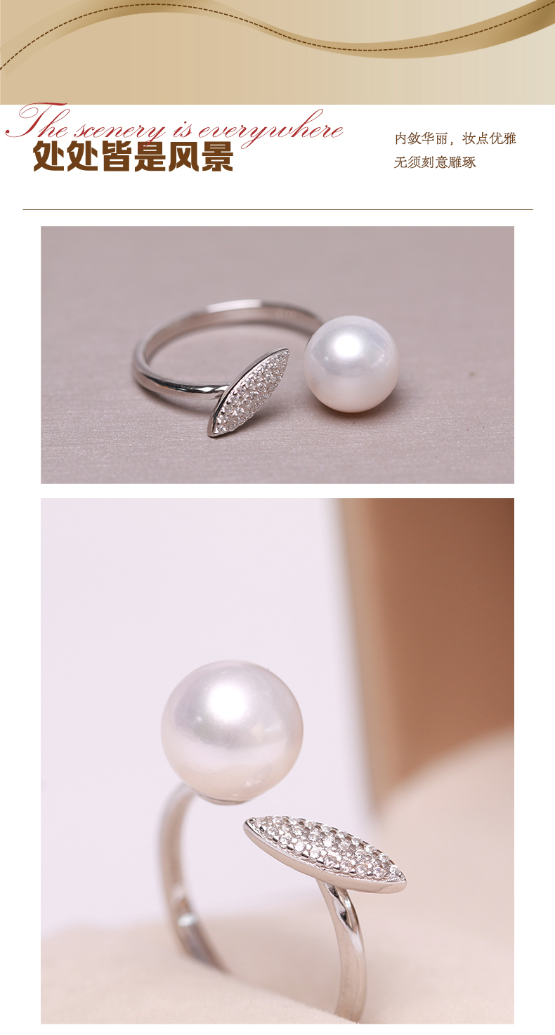 美裕 925银淡水珍珠戒指 开口戒 9-10mm108489W