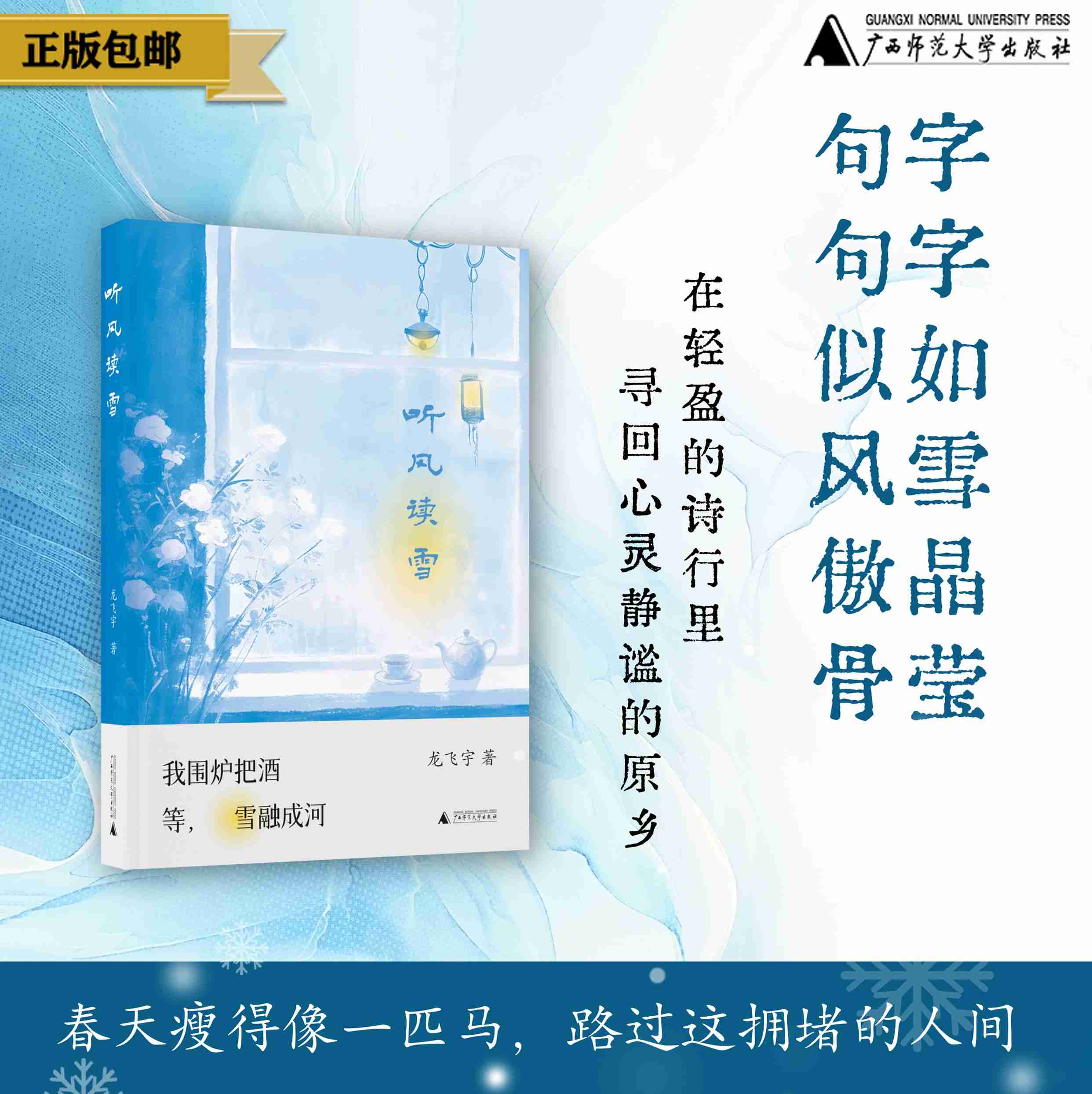 《听风读雪》是彝族青年诗人龙飞宇的首部诗集,共收录百余首诗歌,分为“听风读雪”“时间之书”“以花为媒”“域外之声”“时光印记”五辑。全书以“风”与“雪”为核心意象,构建了一座融合自然哲思、生命体验与精神返乡的诗意迷宫。诗人以细腻敏感的笔触,在风雪、月光、山川、草木之间,探寻生命与时间的本质。他的诗既有对土地与人群的温情凝视,又有对精神原乡的执着追寻;既承续着彝族文化的深沉脉动,又回荡着当代心灵的普遍回响。《听风读雪》不仅是一本诗集,更是一趟从自然意象出发、最终抵达灵魂深处的精神旅程。它用清丽而克制的语言,在喧嚣的时代里,为所有渴望宁静与真实的人,保留了一处可以“听风读雪”的心灵秘境。