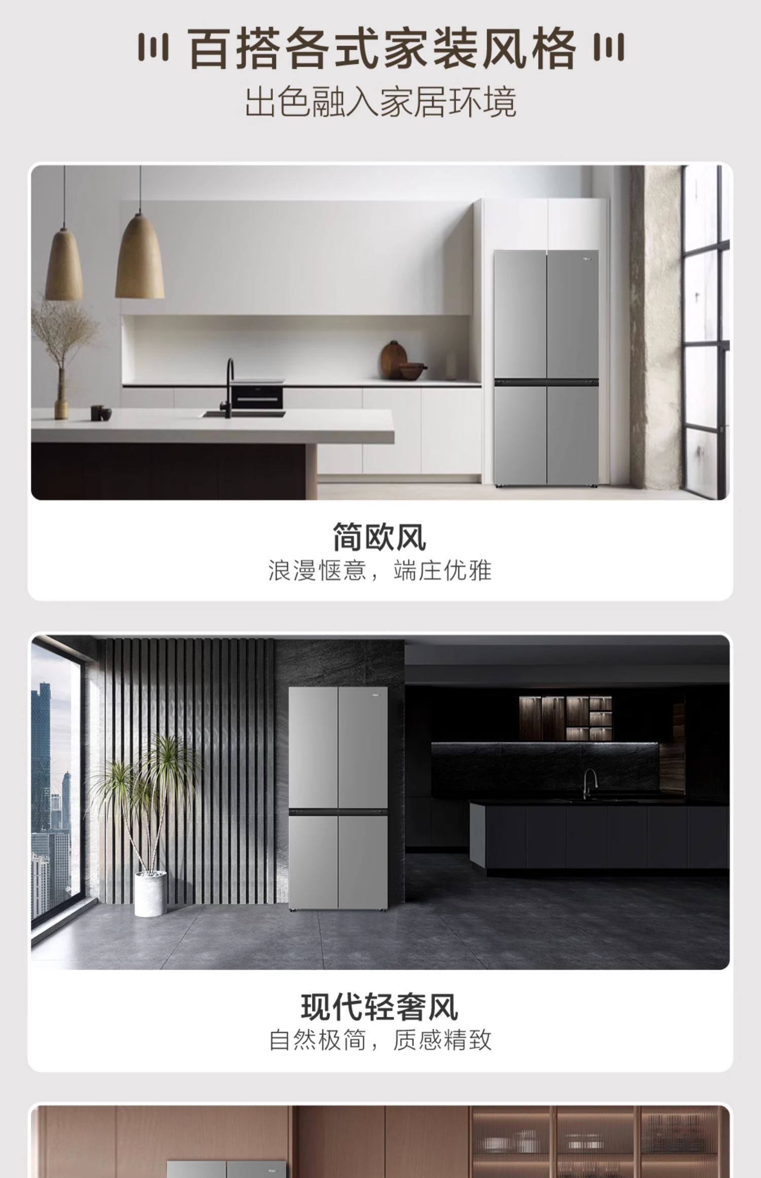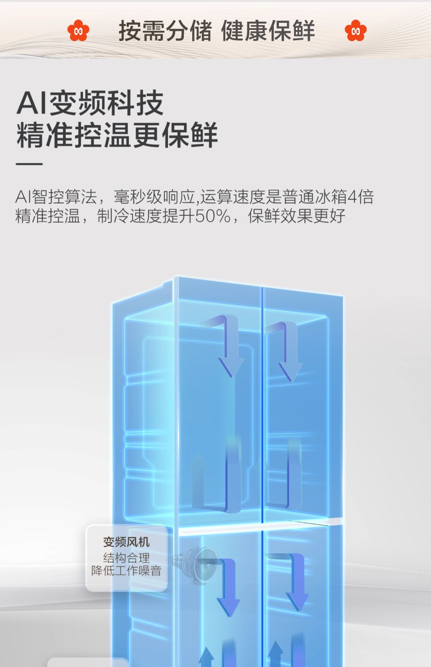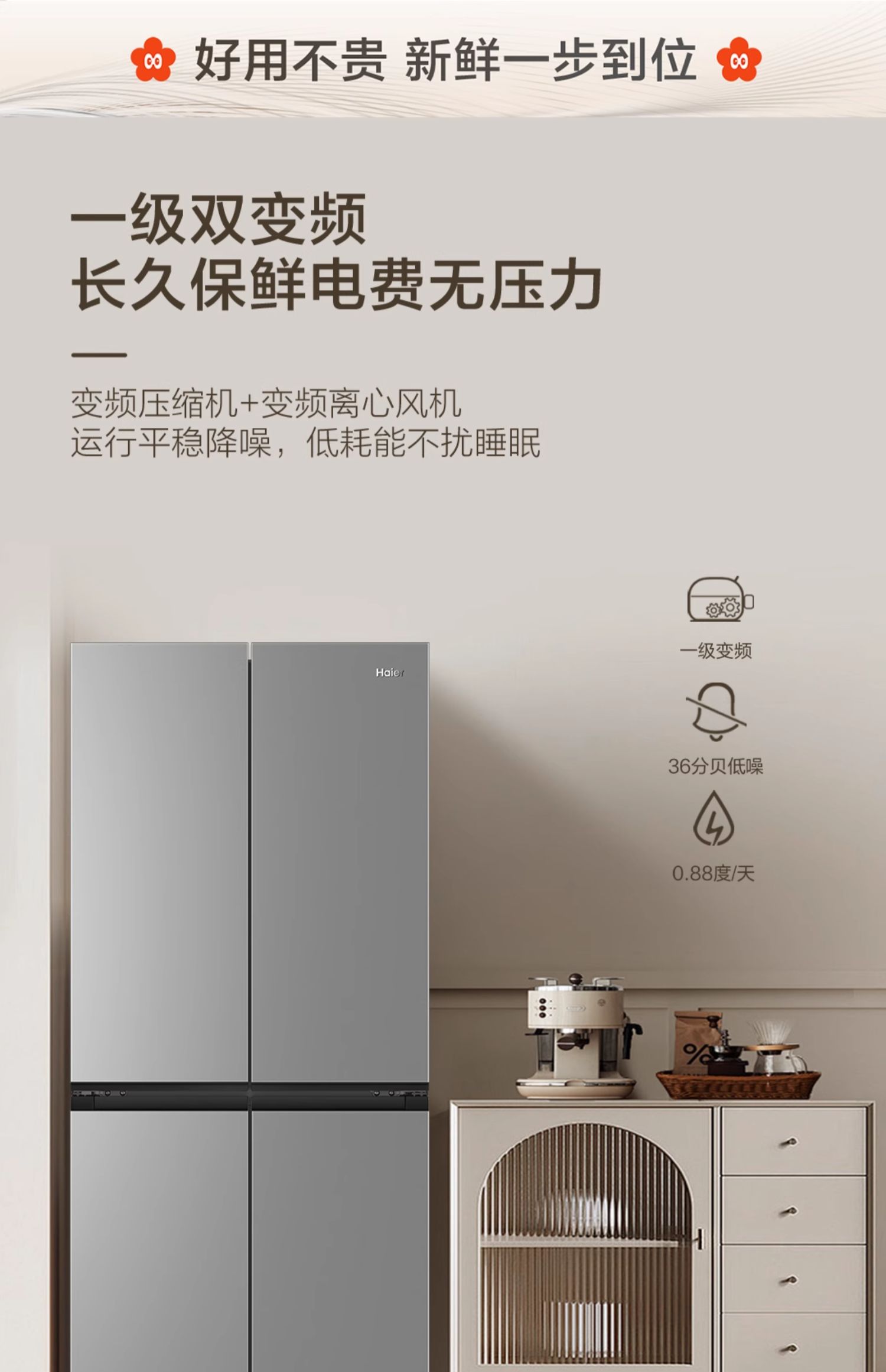 海尔小红花500L十字双开四门一级超薄家用风冷无霜电冰箱BCD-500WGHTDEDH9U1 500L铂岩灰